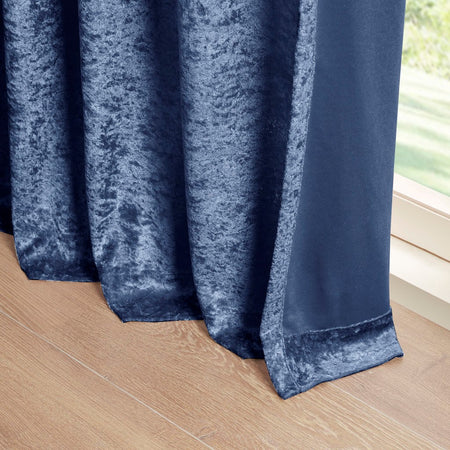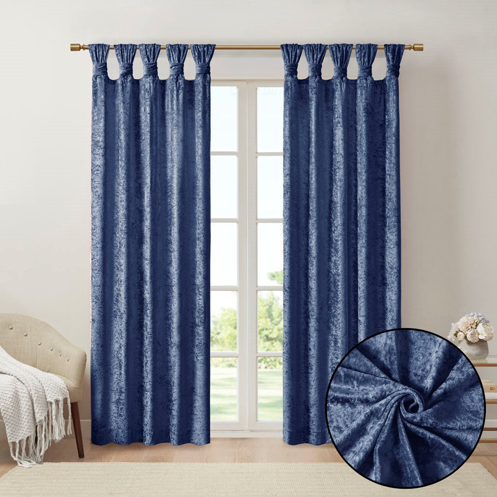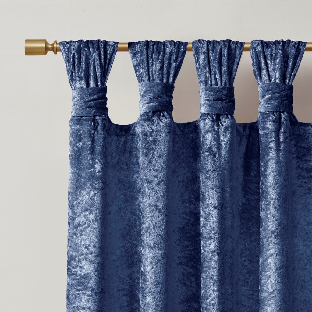 Our Intelligent Design Felicia Velvet Cuff Tab Top Window Panel brings a lush touch of glam to your home decor. This navy velvet curtain flaunts a light sheen and plush texture to create a rich and stylish look. The cuff tab top finish adds a unique and updated touch to the curtain while also making them easy to hang; fits up to a 2 inch diameter rod. This window panel is also finished with antimicrobial treatment providing built in freshness protection, inhibiting growth of odor causing bacteria, and keeping linen newer, longer. Available in 63 inch and 84 inch lengths, this curtain is sold as single panel and 2 will need to be purchased for any standard size window. Coordinating bedding is also available and sold separately.