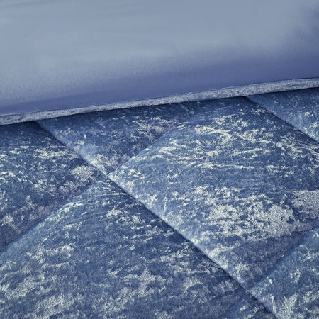 - Luxurious, periwinkle blue crushed velvet duvet cover set features diamond quilting on top of the bed