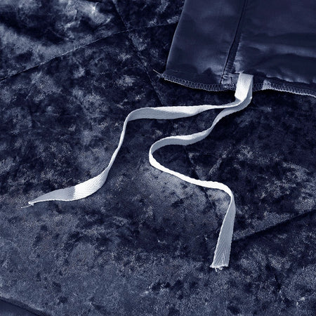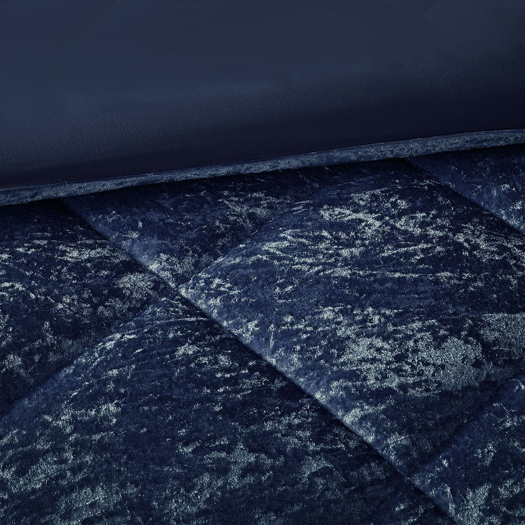Create a luxuriously comfortable bedroom space with the Intelligent Design Felicia 3 Piece Velvet Duvet Cover Set. The crushed velvet, navy duvet cover features a quilted diamond top that adds dimension to the glamorous look. Matching shams (1 for Twin Sizes) coordinate with the velvet duvet cover, while an oblong decorative pillow provides a perfect finishing touch. Machine washable for easy care, this velvet duvet cover set brings incredible softness and comfort with a luxurious flair to your bedroom decor. Button closures allow you to place a comforter insert within the duvet cover and internal corner ties help prevent it from shifting (Insert is NOT included).