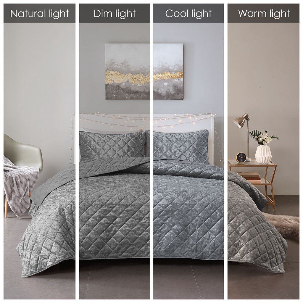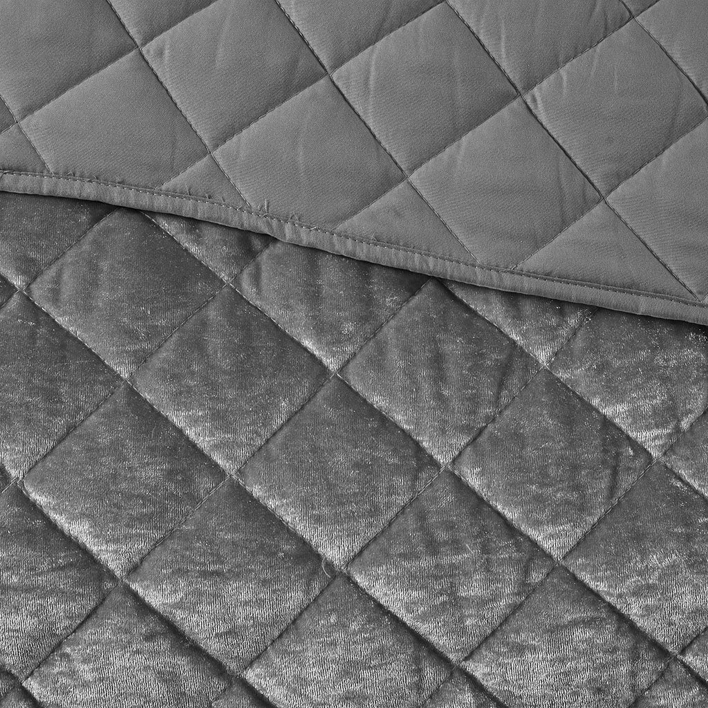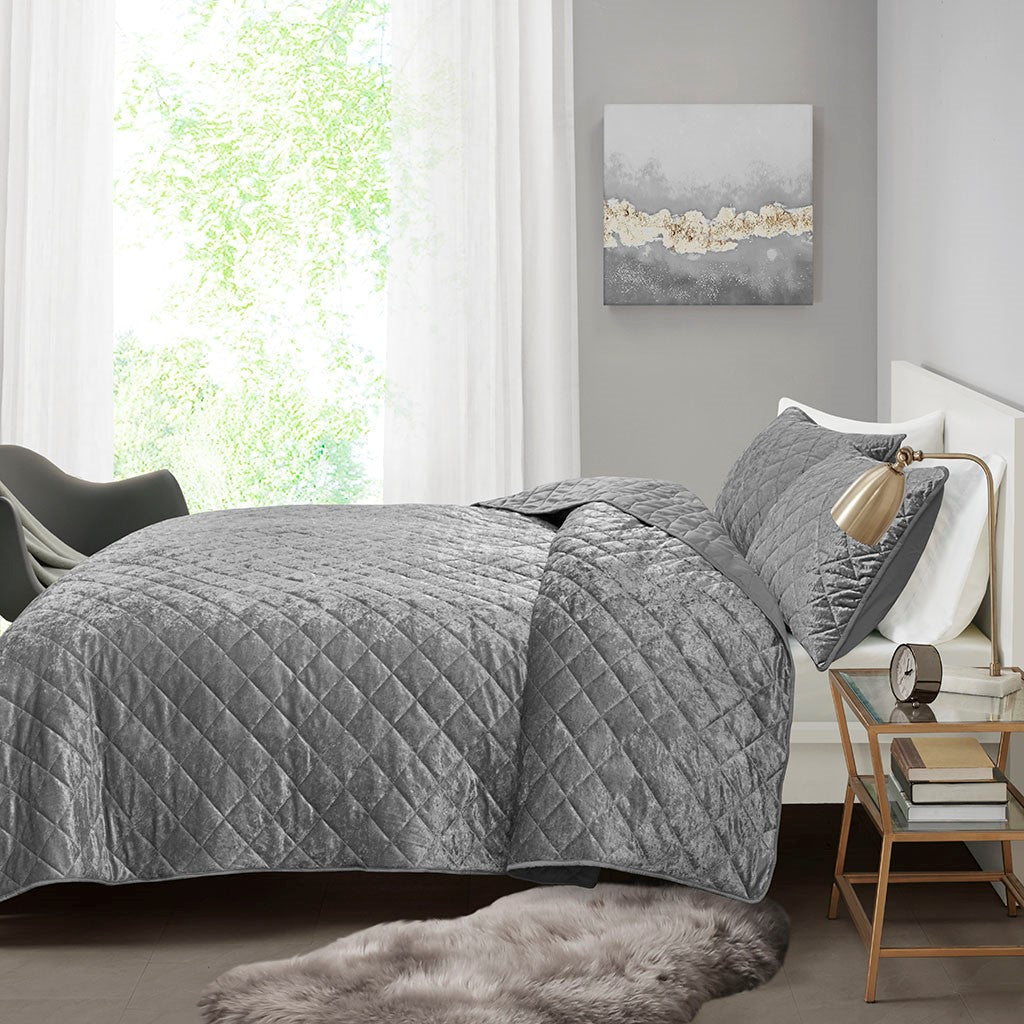 Felicia Velvet Quilt Set - Grey - Twin Size / Twin XL Size
