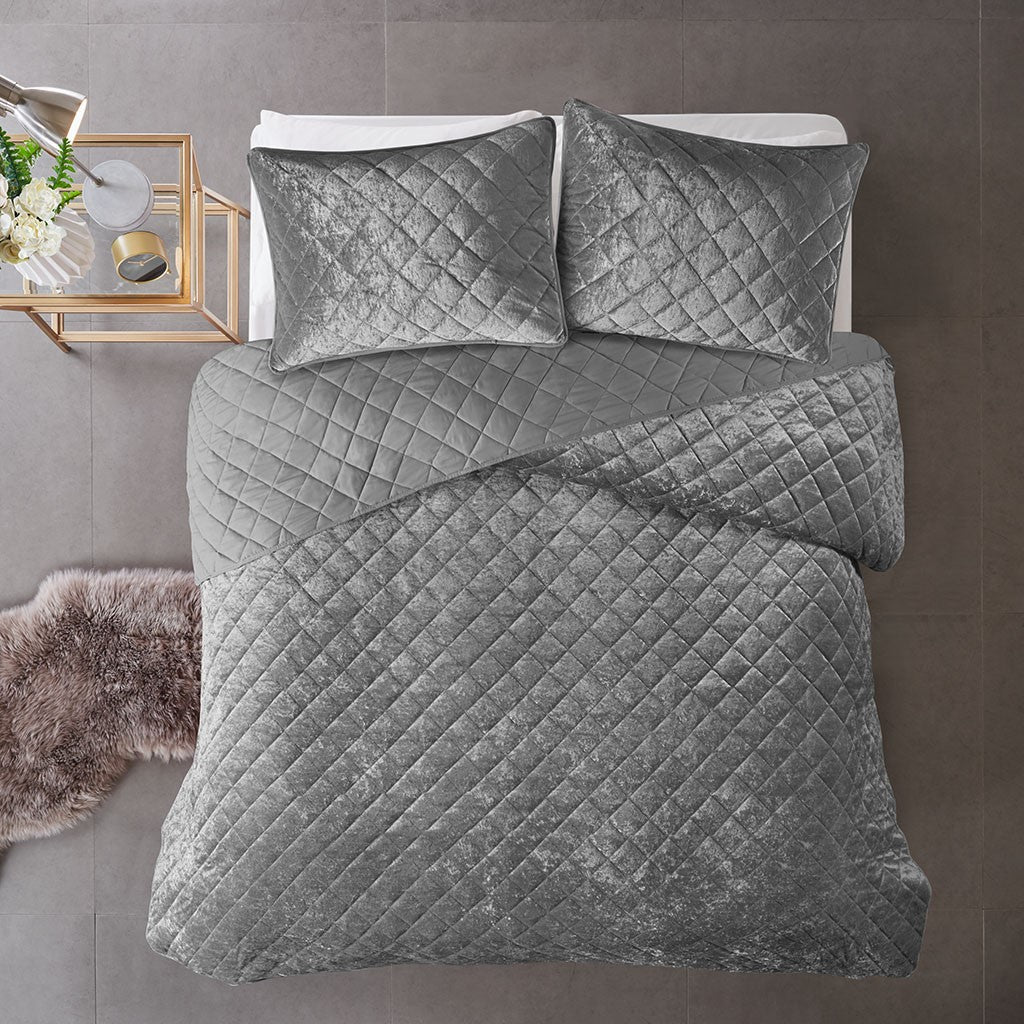 - Luxurious crushed velvet coverlet set features diamond quilting on top of the bed