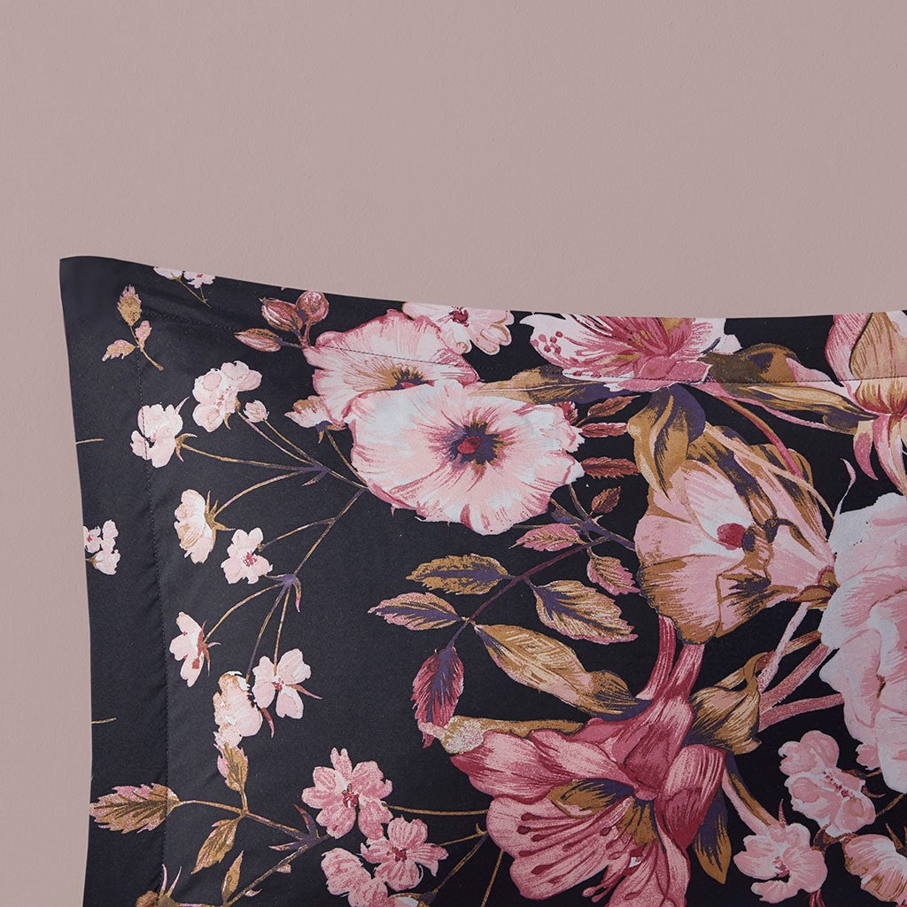 Gabriella Floral Printed Duvet Cover Set - Black - Full Size / Queen Size