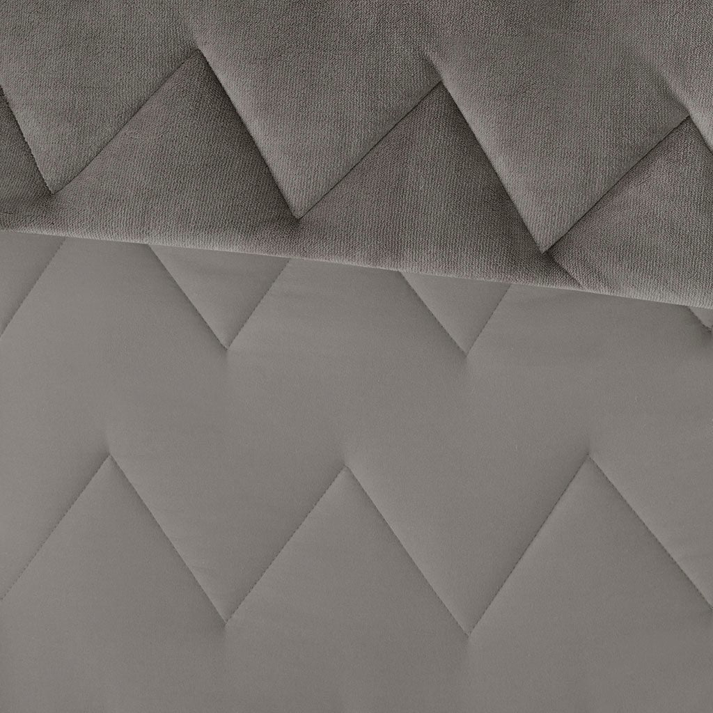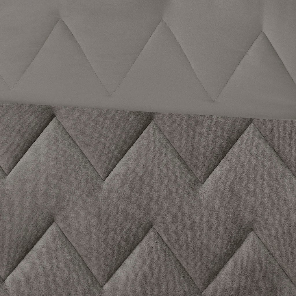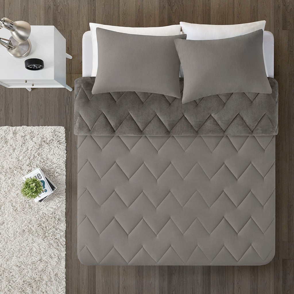 Kai Solid Chevron Quilted Reversible Microfiber to Cozy Plush Comforter Set - Grey - Full Size / Queen Size
