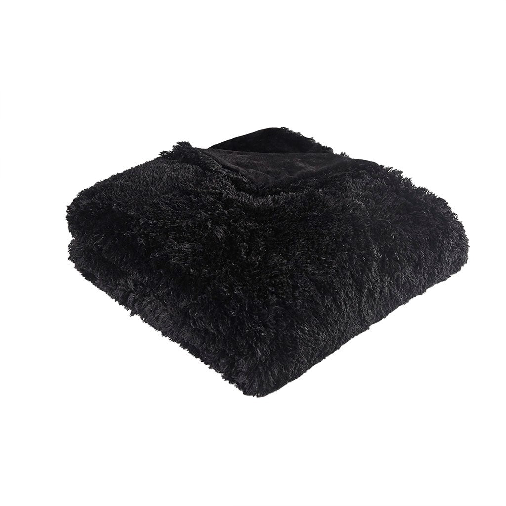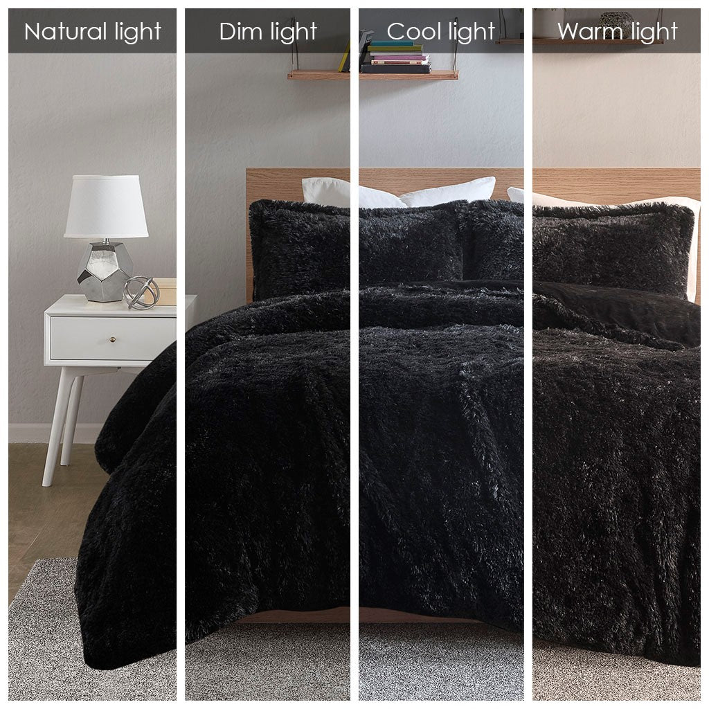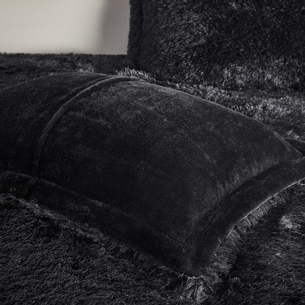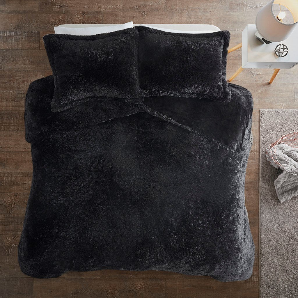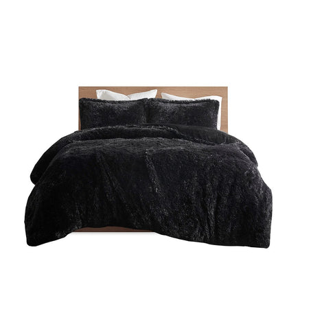 Malea Shaggy Fur Duvet Cover Set - Black - Full Size / Queen Size