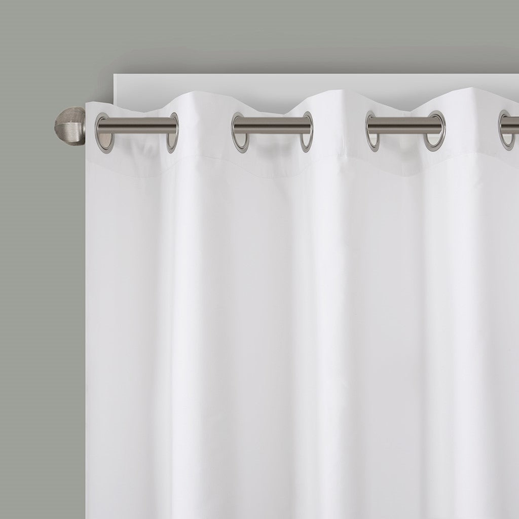 Intelligent Design Olivia Total Blackout Window panel uses bright colors and an asymmetrical floral design to brighten up your space. Pops of teal, green, fuchsia and yellow flowers adorn one side of the panel, creating contrast against the white ground for an abstract look. Finished with a heavy 3 pass foamback liner, this panel is 100% total blackout for a maximum barrier against all exterior light and noise intrusion for the utmost privacy, while the thermal technology provides energy efficiency. Grommet top makes this panel easy to hang, open, and close through the day; fits up to a standard 1.25" diameter rod. Machine washable for easy care; complete the collection with coordinating bedding and shower curtain sold separately.