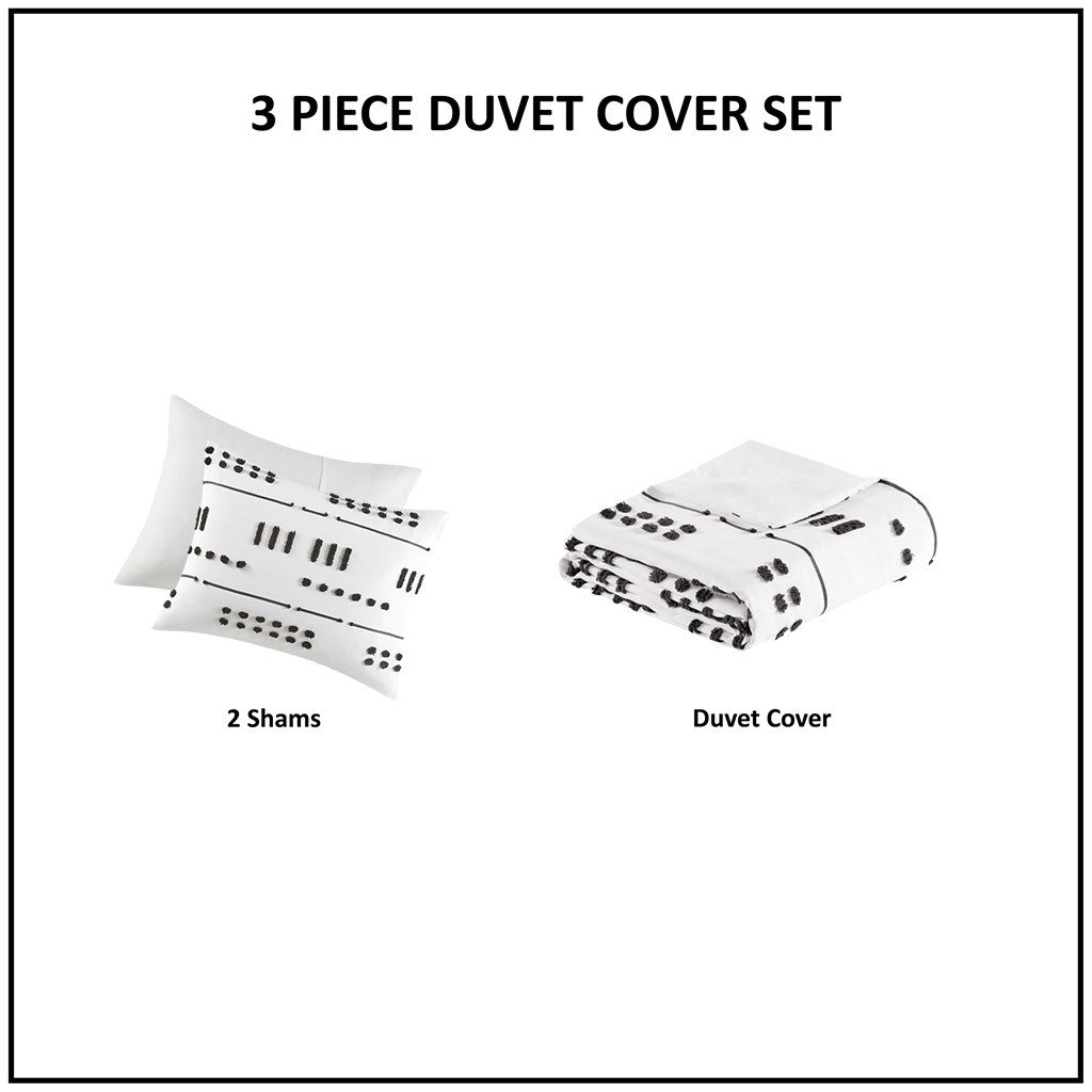 Riku Clip Jacquard Duvet Cover Set - Black / White - Twin Size / Twin XL Size