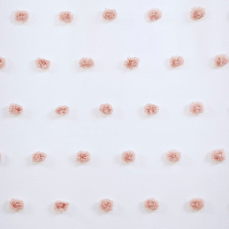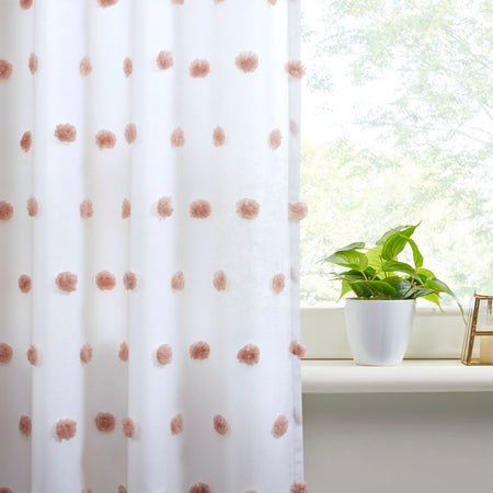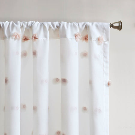 Add a unique and fun style to your bedroom with the Intelligent Design Sophie Pom Pom Embellished Window Panel. This window panel features an all-over clipped soft pompom detailing, in a blush color, for a stylish textured polka dot design. The lightweight semi-sheer base fabric creates an airy look and feel, while a rod pocket top finish makes the window panel easy to hang. This window panel is also OEKO-TEX certified, meaning it does not contain any harmful substances or chemicals, ensuring quality comfort and wellness. Machine washable for east care, this pompom sheer window panel easily completes your bedroom decor with a one-of-a-kind look. Fits up to a 1.25" diameter rod.