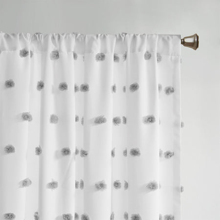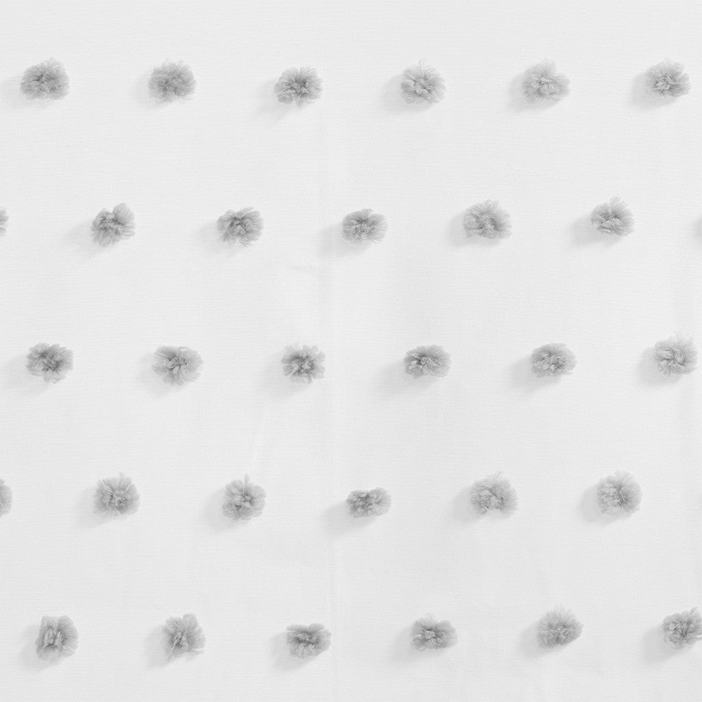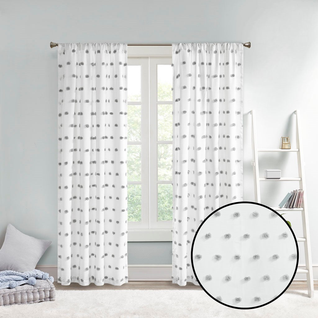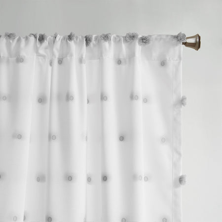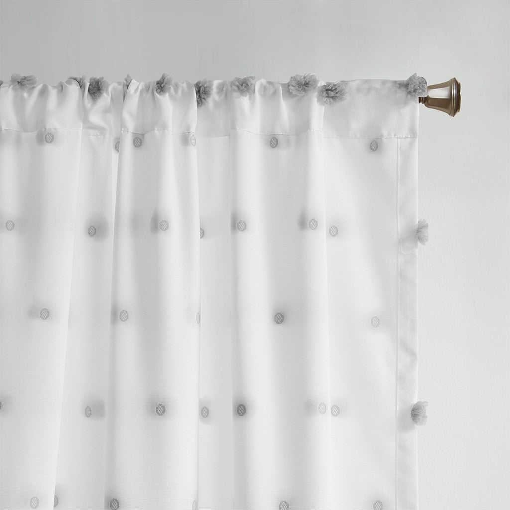 Add a unique and fun style to your bedroom with the Intelligent Design Sophie Pom Pom Embellished Window Panel. This window panel features an all-over clipped soft pompom detailing, in a light grey color, for a stylish textured polka dot design. The lightweight semi-sheer base fabric creates an airy look and feel, while a rod pocket top finish makes the window panel easy to hang. Machine washable for east care, this pompom sheer window panel easily completes your bedroom decor with a one-of-a-kind look. Panel sold as single; will need to purchase 2 panels for any standard size window.