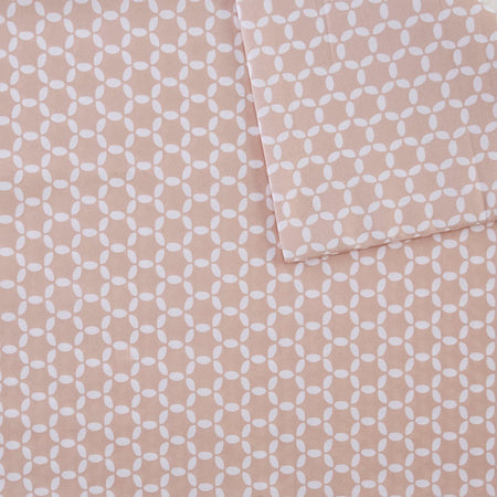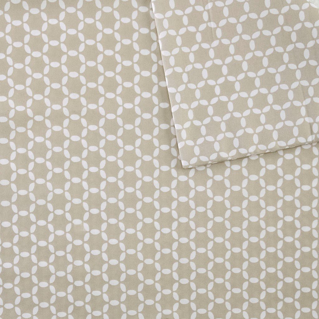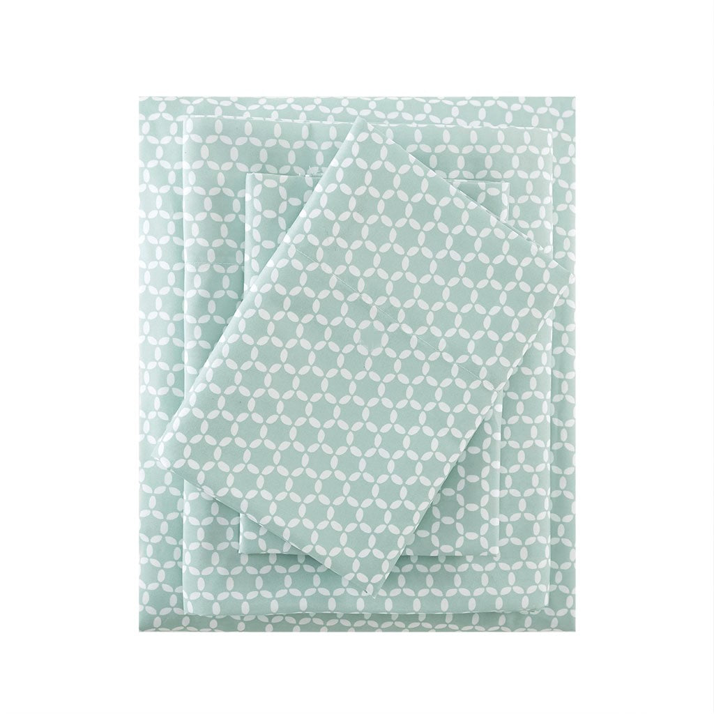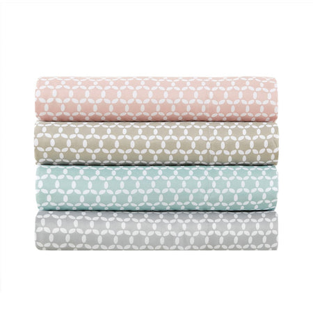 The Madison Park 3M Microcell Printed Sheet Set brings a chic blend of style and comfort for a fashionable update to your bed. This microcell sheet set is lightweight and features a geometric pattern that pairs easily with any bedroom space. A 3M Scotchgard Moisture Management Treatment wicks away moisture, resists stains, and lasts wash after wash to give you exceptional comfort all year long. This sheet set has an antimicrobial treatment for health and wellness - kills and prevents bacteria buildup, helps reduce odors, and enhances hygiene. These sheets are also OEKO-TEX certified, meaning they do not contain any harmful substances or chemicals, ensuring quality comfort and wellness. The deep pocket fitted sheet fits up to an 18-inch mattress depth. Set includes: 1 Flat Sheet, 1 Fitted Sheet, and 2 Pillowcases (1 in Twin/TwinXL).