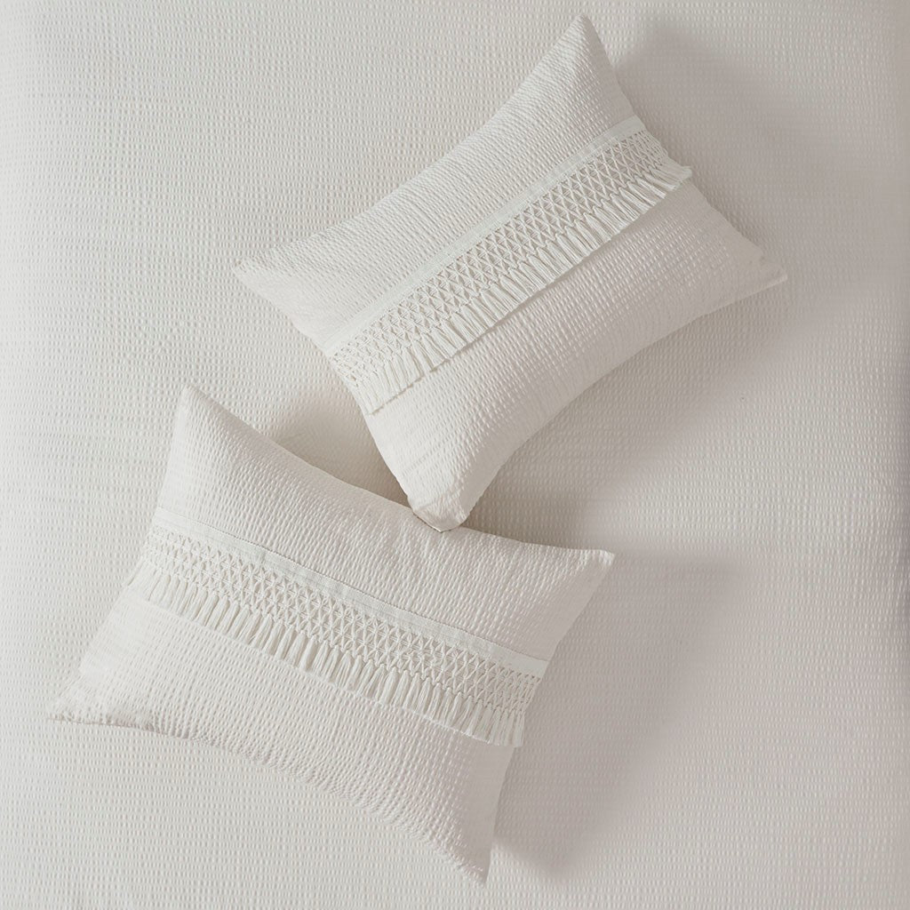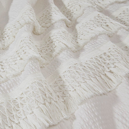 Restyle your bedroom with shabby chic allure of the Madison Park Amaya 3 Piece Cotton Seersucker Duvet Cover Set. The ivory seersucker duvet cover is made from 100% cotton and features decorative tassel trims for a globally inspired look. Two matching shams mirror the design of the duvet cover, completing the cotton seersucker bedding set.
