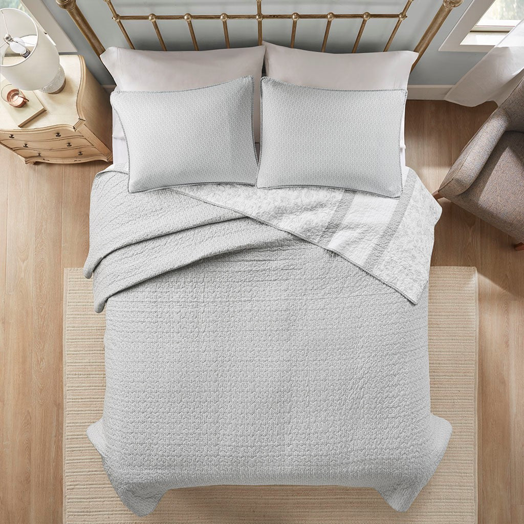 Amber 3 Piece Reversible Cotton Coverlet Set - Cream / Grey - King Size / Cal King Size