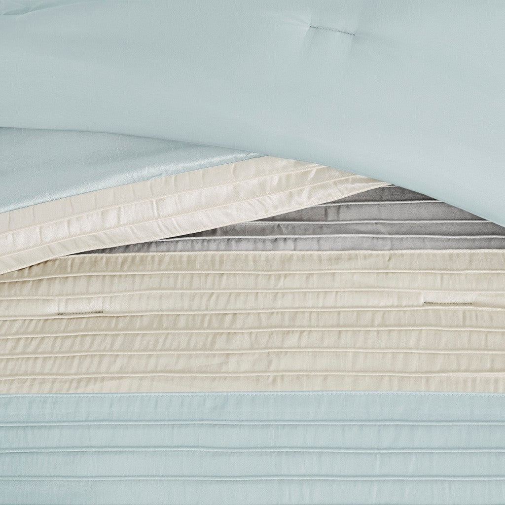 - Transitional style 7 piece comforter set in pintucking and embroidery details