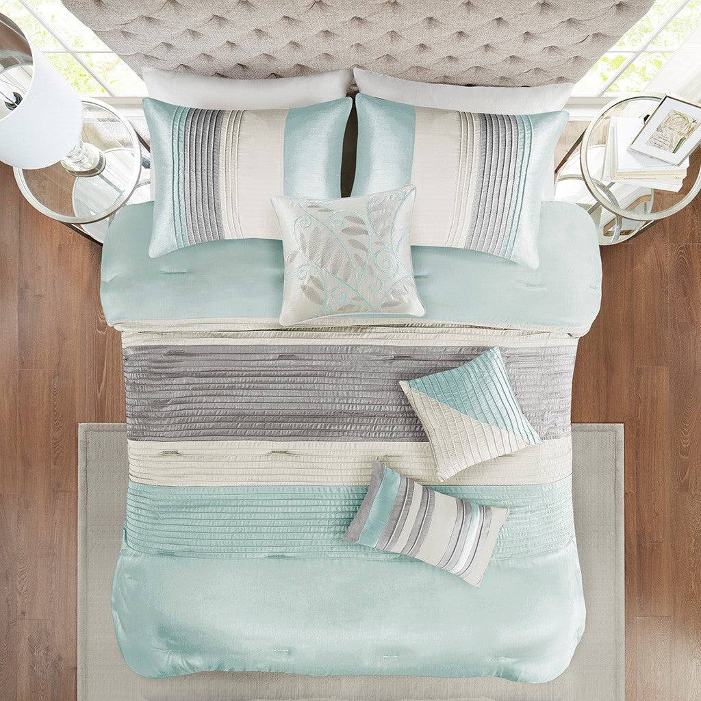 Amherst 7 Piece Comforter Set - Aqua - King Size