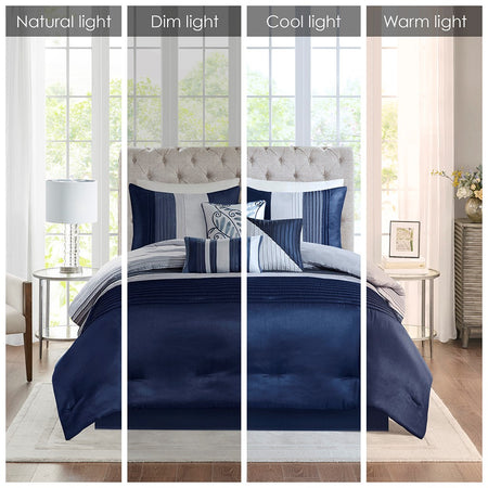 Amherst 7 Piece Comforter Set - Navy - King Size