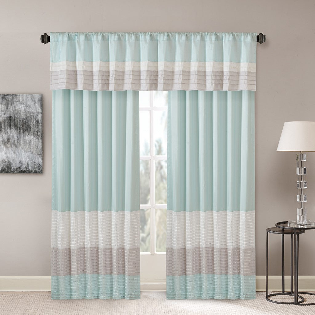 Amherst Polyoni Pintuck Valance - Aqua - 50x18"