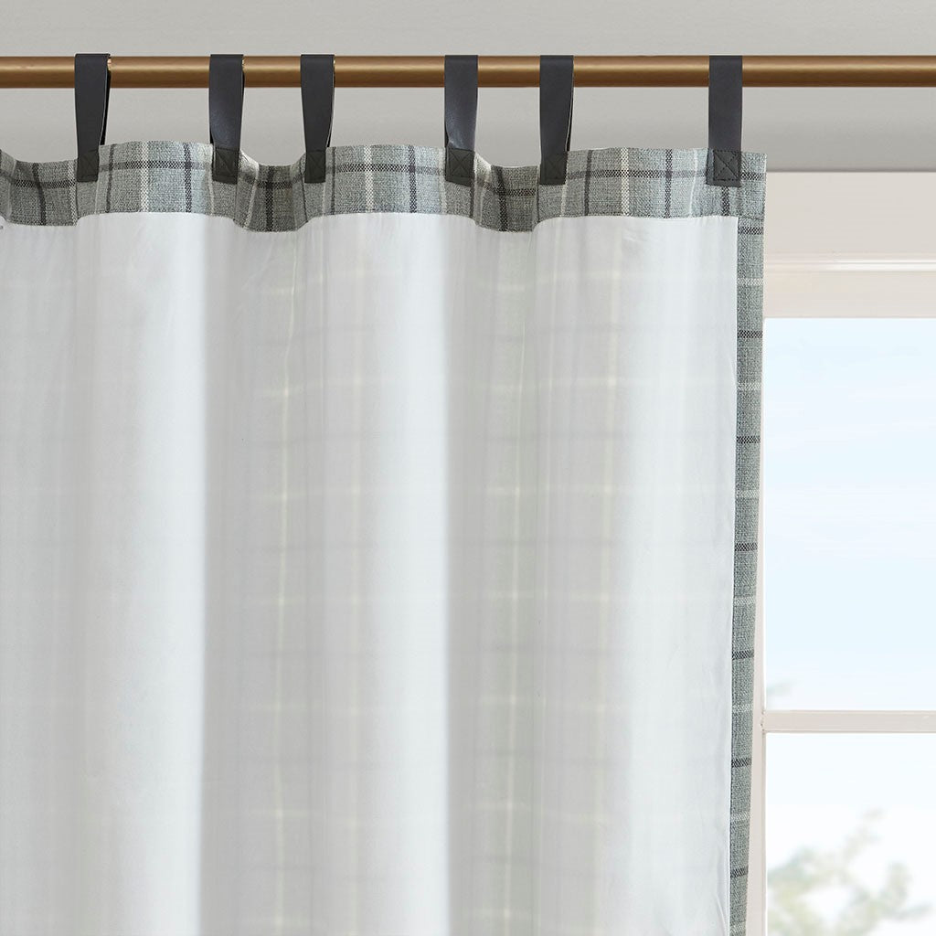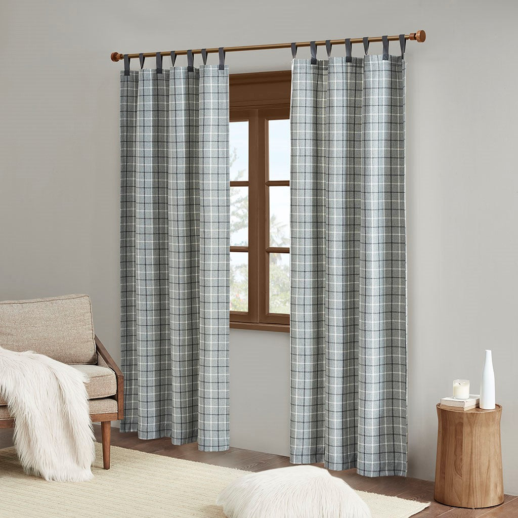 The Madison Park Anaheim Plaid Faux Leather Tab Top Panel with Fleece Lining offers a stylish and casual cabin update to your home decor. A yarn-dyed blue tone grey plaid pattern adorns the heavyweight base fabric for a warm and cozy look, while the dark grey faux leather tab top finish adds a unique decorator's touch. The added fleece lining on the back provides more privacy and quality thermal insulation, while still letting the natural sunlight into warm your home. Available in 84"Â and 95"Â lengths, each panel is sold separately and is machine washable for easy care. Need to purchase two panels for each standard size window.