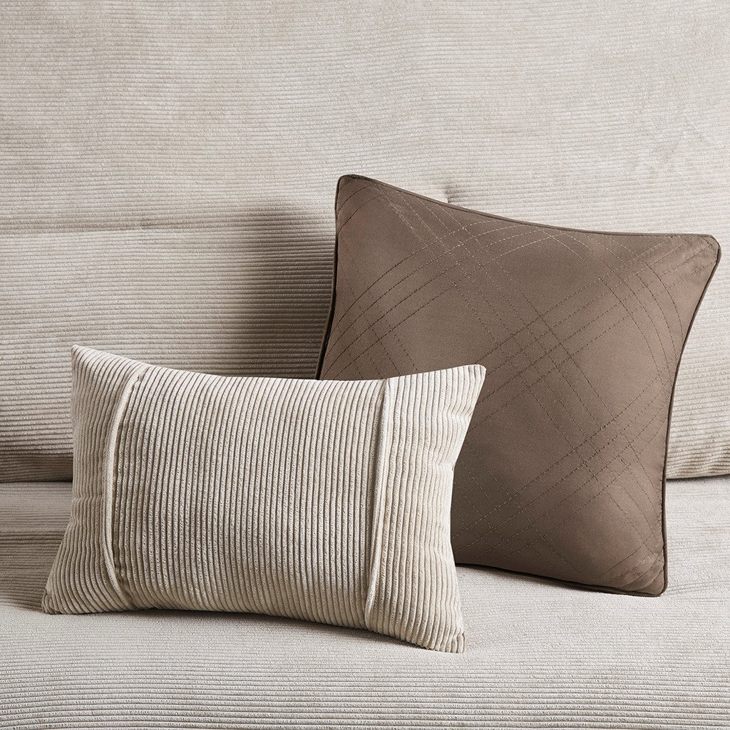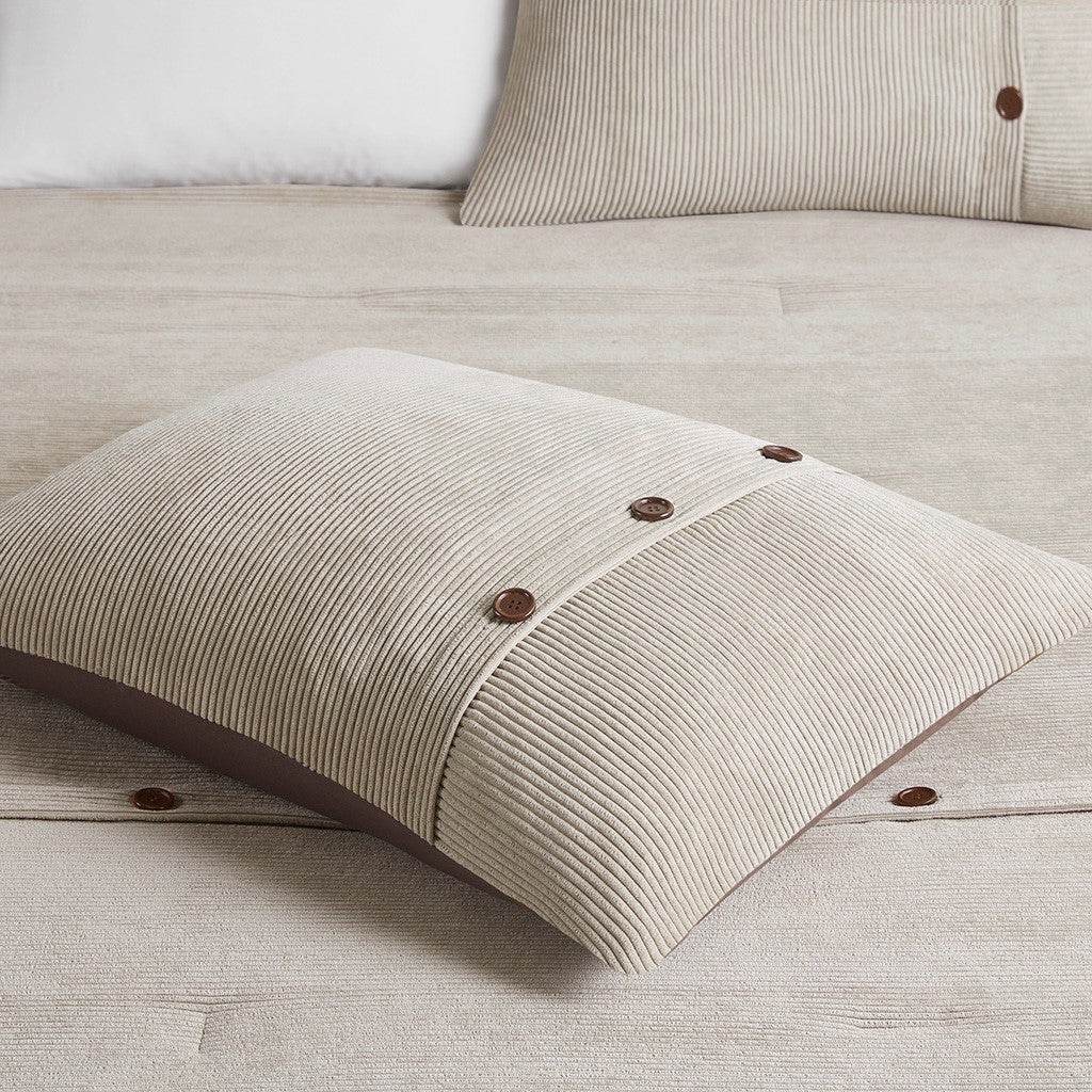 Rich texture, warmth, and elegance are yours when you add Madison Park’s Andes corduroy comfort set to your bed. Made from soft polyester corduroy, this tan comforter features decorative buttons that add a country style accent to the bed. A solid brown microfiber reverse provides additional softness, while also complementing the lush texture and dimension of the comforter face. Completed with 2 decorative pillows that flaunt quilting and piecing details, this plush comforter set gives your bedroom a cozy and inviting look.