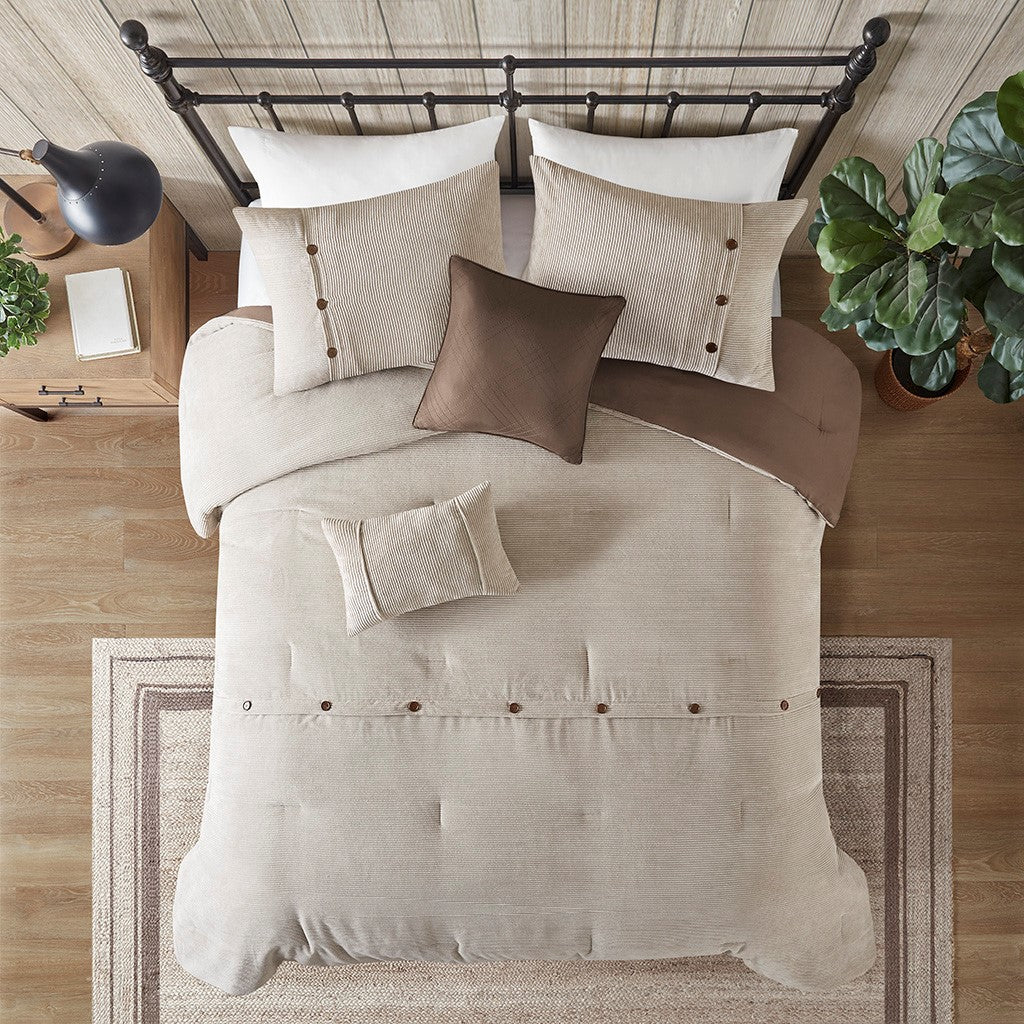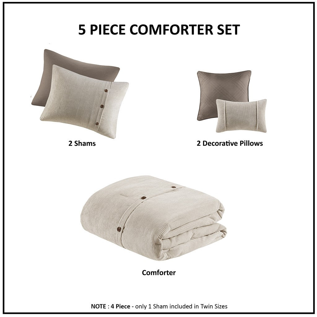Andes 5 Piece Corduroy Comforter Set - Tan - King/Cal King