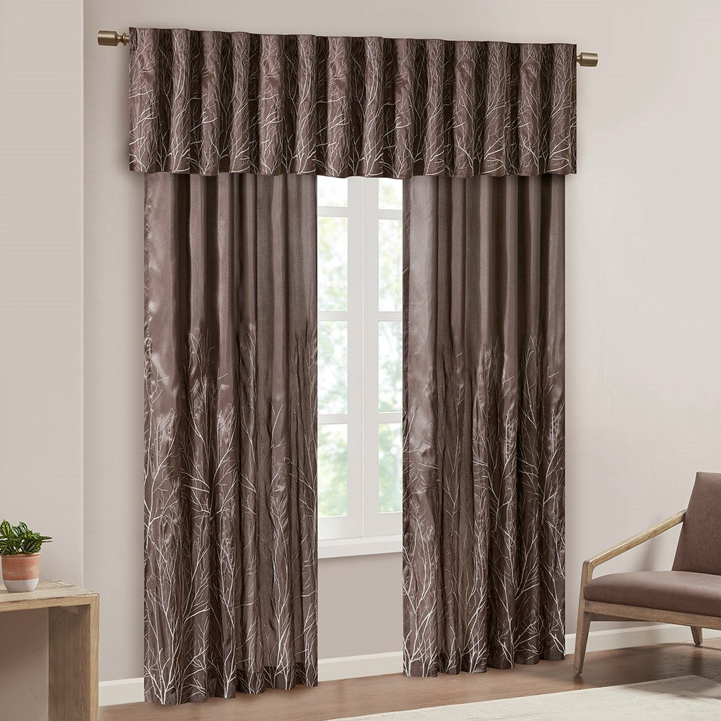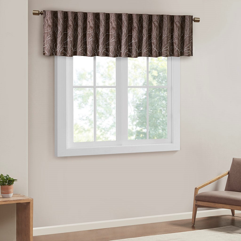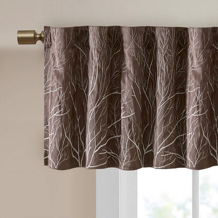 The Madison Park Andora Valance Combines Style And Nature In The Best Way. A Striking Tree Branch Design Is Embroidered On Beautiful Faux Silk, Creating Alluring Contrast And Dimension. The Valance Features Added Lining For More Privacy And Better Drapability, While The Luxurious Sheen Provides A Touch Of Sophistication To Your Decor. Finished With Rod Pocket Top; Fits Up To A 1.25"Â Diameter Rod. Perfect On Its Own For Small Windows Or Layer With Coordinate Panel Sold Separately For A Complete Look. Due To The Fabrication And All Over Embroidery Design, Some Texture And Crinkle Maybe Left After Steaming (Steam Only, Do Not Iron).