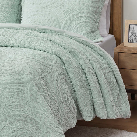 Transform your bedroom with the elegant style of Madison Park's Arya Medallion Faux Fur Comforter Mini Set. The rich aqua comforter and matching sham feature an embroidered medallion design on the ultra-soft plush fabric. Machine washable for easy care, this comforter set makes a stunning addition to your home.