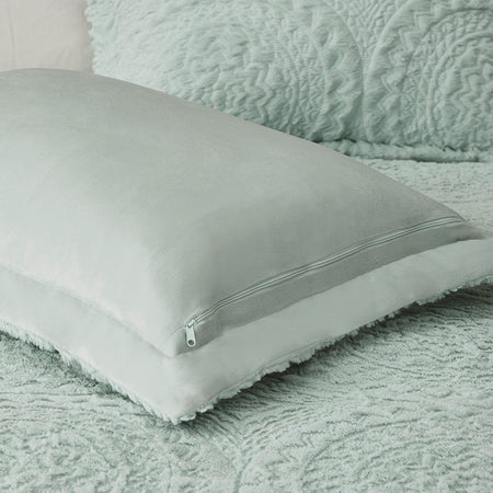 Arya Embroidered Medallion Faux Fur Ultra Plush Comforter Mini Set - Aqua - Full Size / Queen Size
