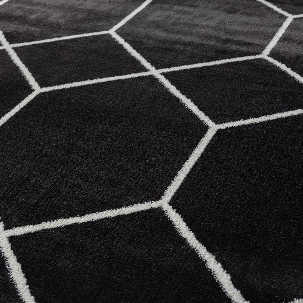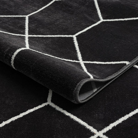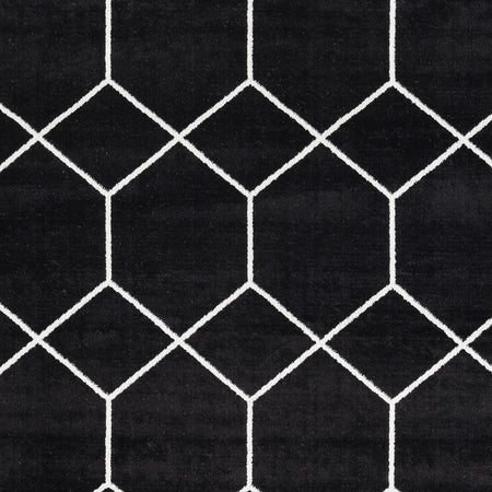 - Geometric trellis design in contrasting shades of black and cream