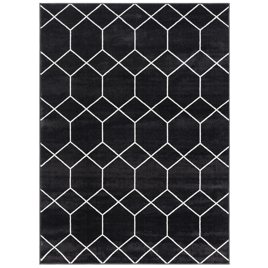 Averie Trellis Geometric Woven Area Rug - Black / Cream - 5x7'