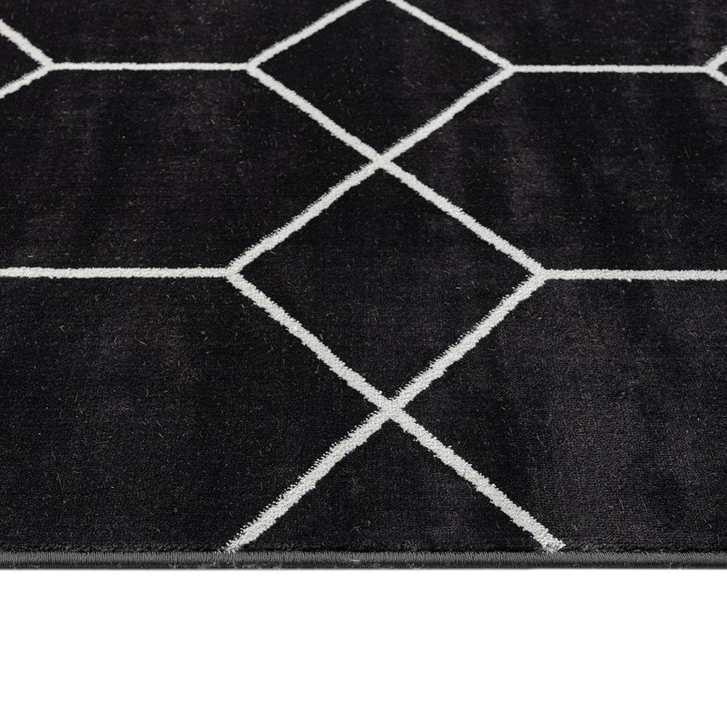 - Geometric trellis design in contrasting shades of black and cream