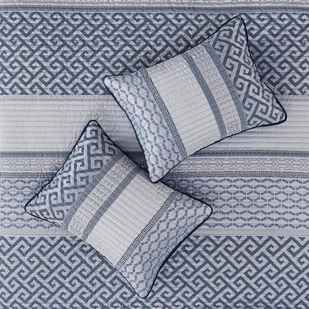 - Luxury and elegant jacquard 4 piece coverlet set in shades of navy and gray