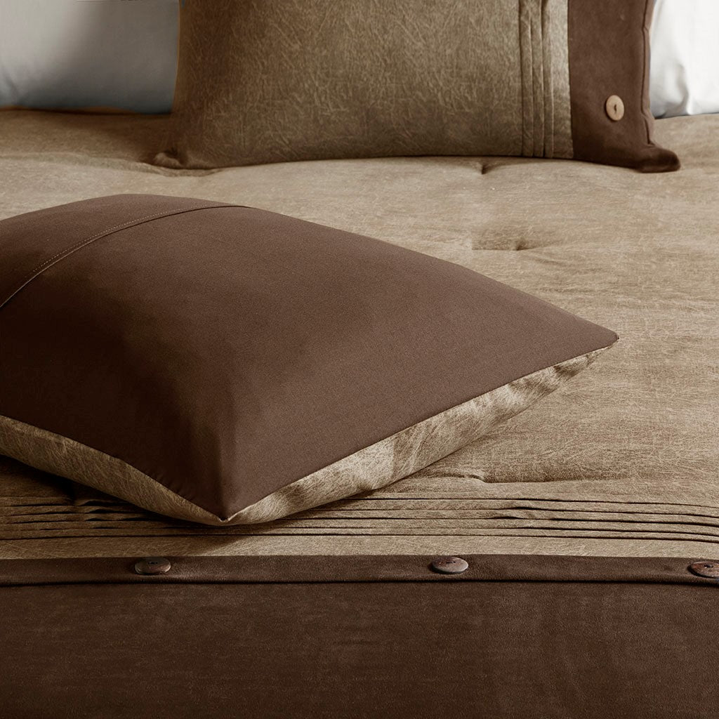 Boone 7 Piece Faux Suede Comforter Set - Brown - Queen Size