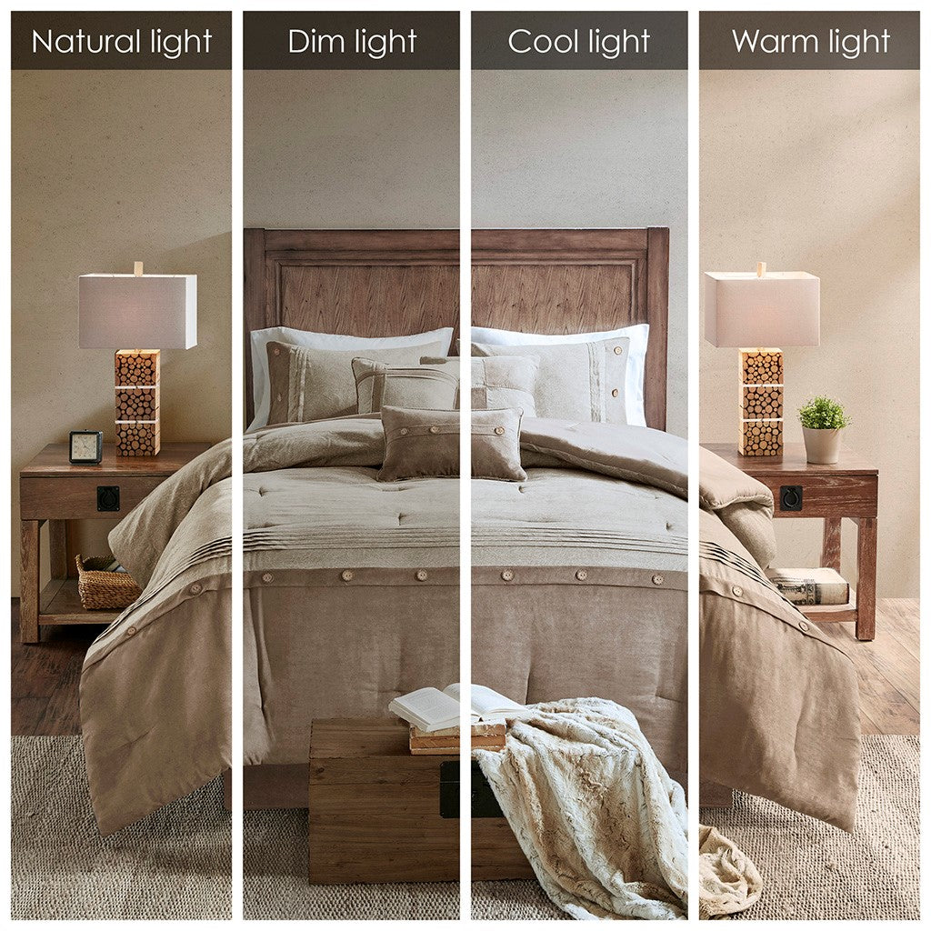 Boone 7 Piece Faux Suede Comforter Set - Tan - Cal King Size