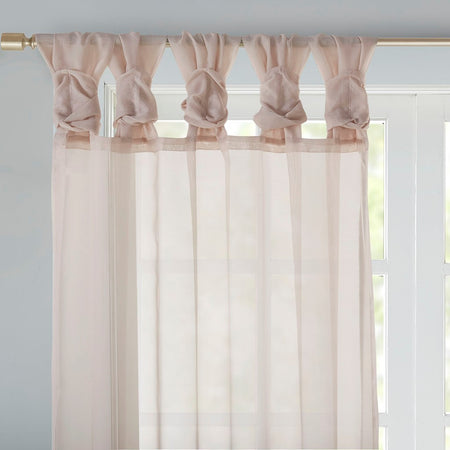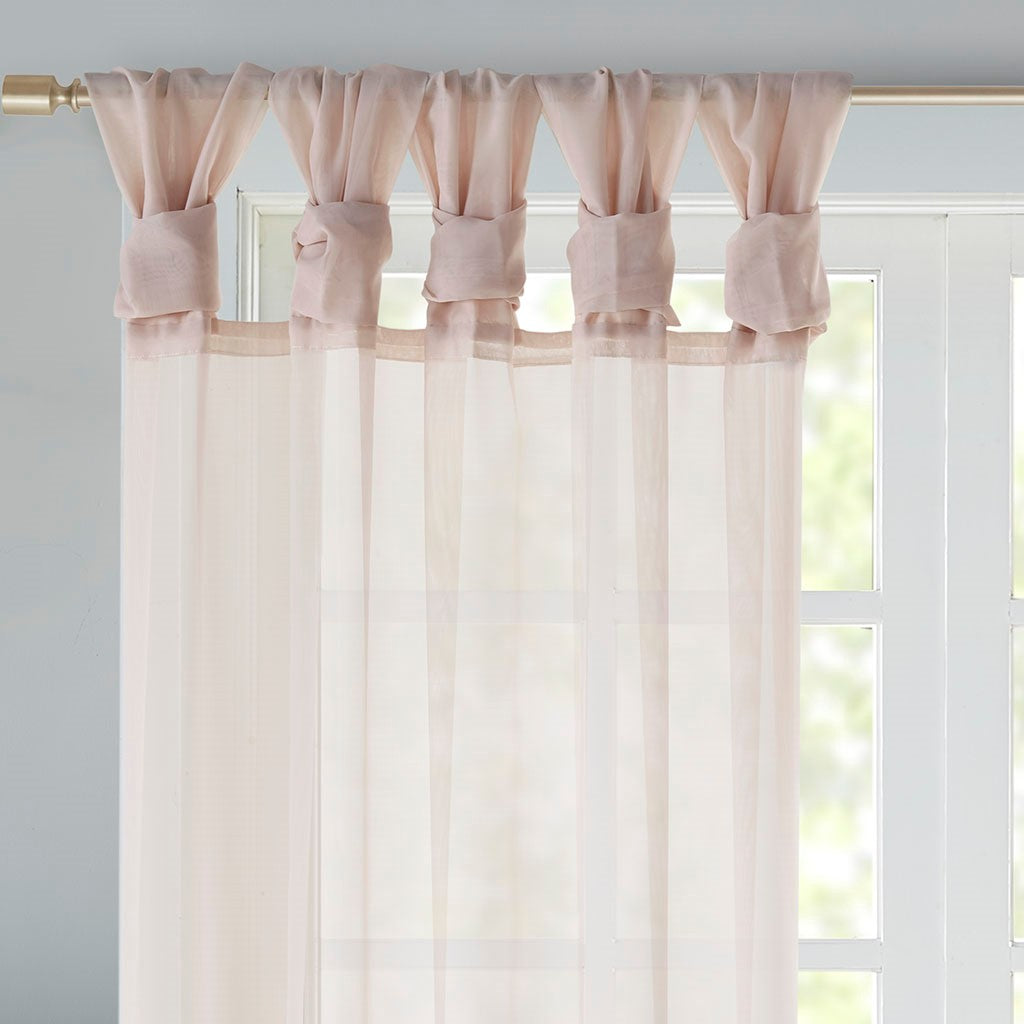 Soften your space with the Madison Park Ceres Twisted Tab Voile Sheer Window Pair. This soft panel pair provides a simple and airy update to your decor, with its lightweight voile sheer base and delicate color palette for the perfect ethereal touch. The DIY twist tab top creates beautiful and delicate folds for a stylish decorator's touch. This window panel is also OEKO-TEX certified, meaning it does not contain any harmful substances or chemicals, ensuring quality comfort and wellness. Machine washable and easy to hang, open, and close throughout the day and fits up to a 1.25" diameter rod. This window panel pair is perfect on its own for a soft filter or layer with others for a dramatic effect.