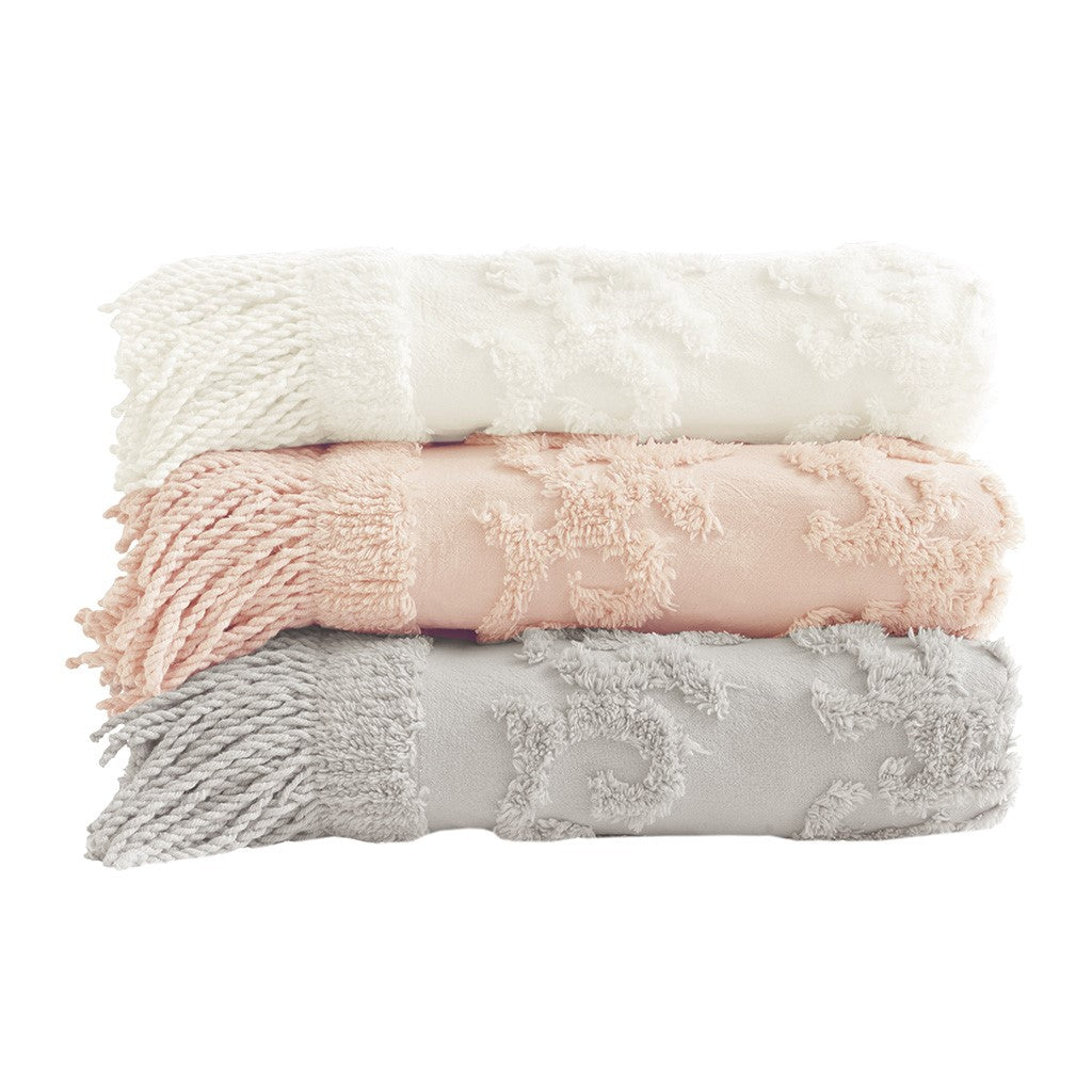 The Madison Park Chloe Cotton Tufted Throw provides a luxurious addition to your home decor. This blush throw flaunts an elegant tufted chenille design with a 4-inch fringe on each end, for a beautiful bohemian look. The ultra-soft 100% cotton construction creates a light natural feel that's perfect for all seasons. Machine washable, this cotton tufted throw is great for layering across your bed or for simply bundling up in to stay warm and cozy.