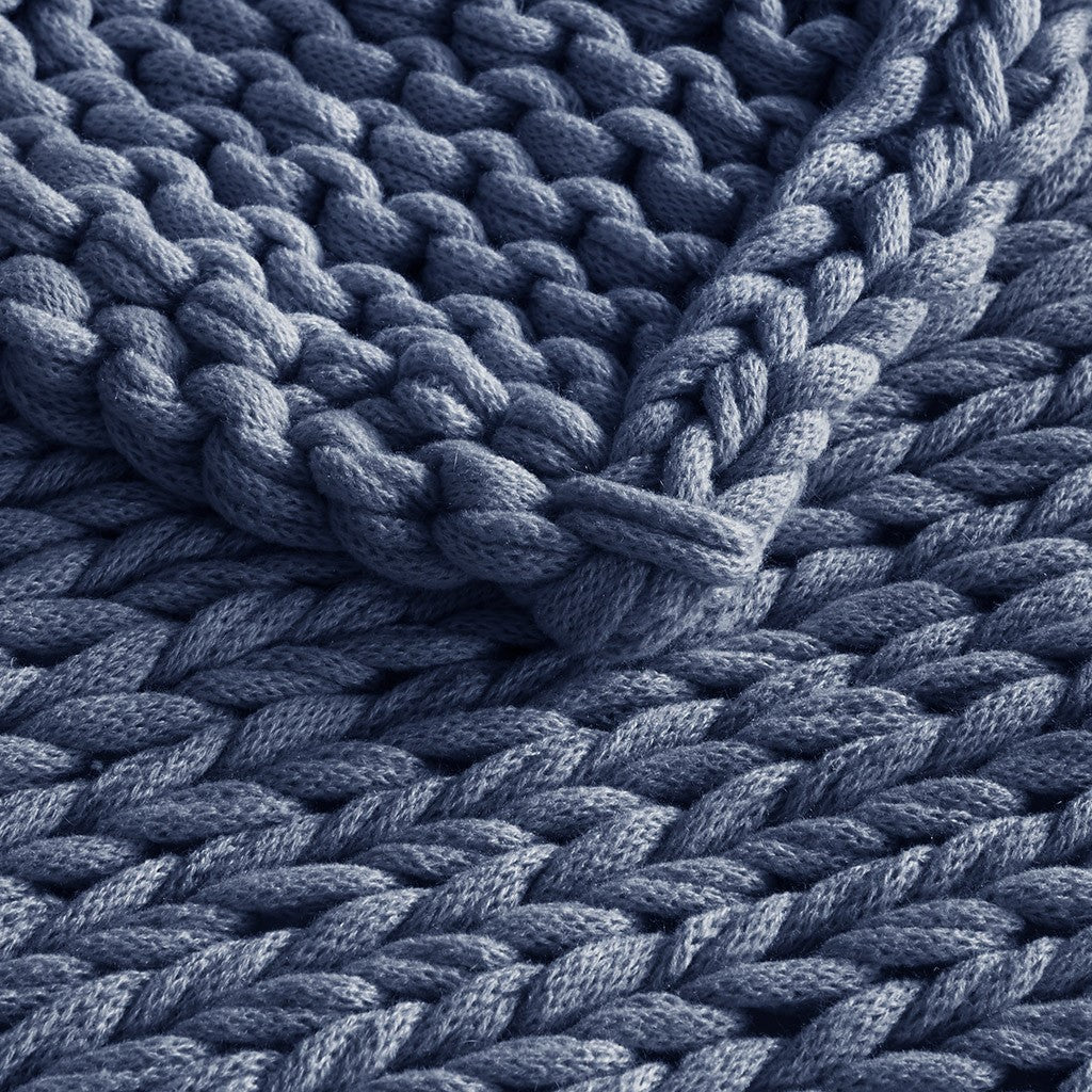 Chunky Double Knit Handmade Throw - Indigo - 50x60"