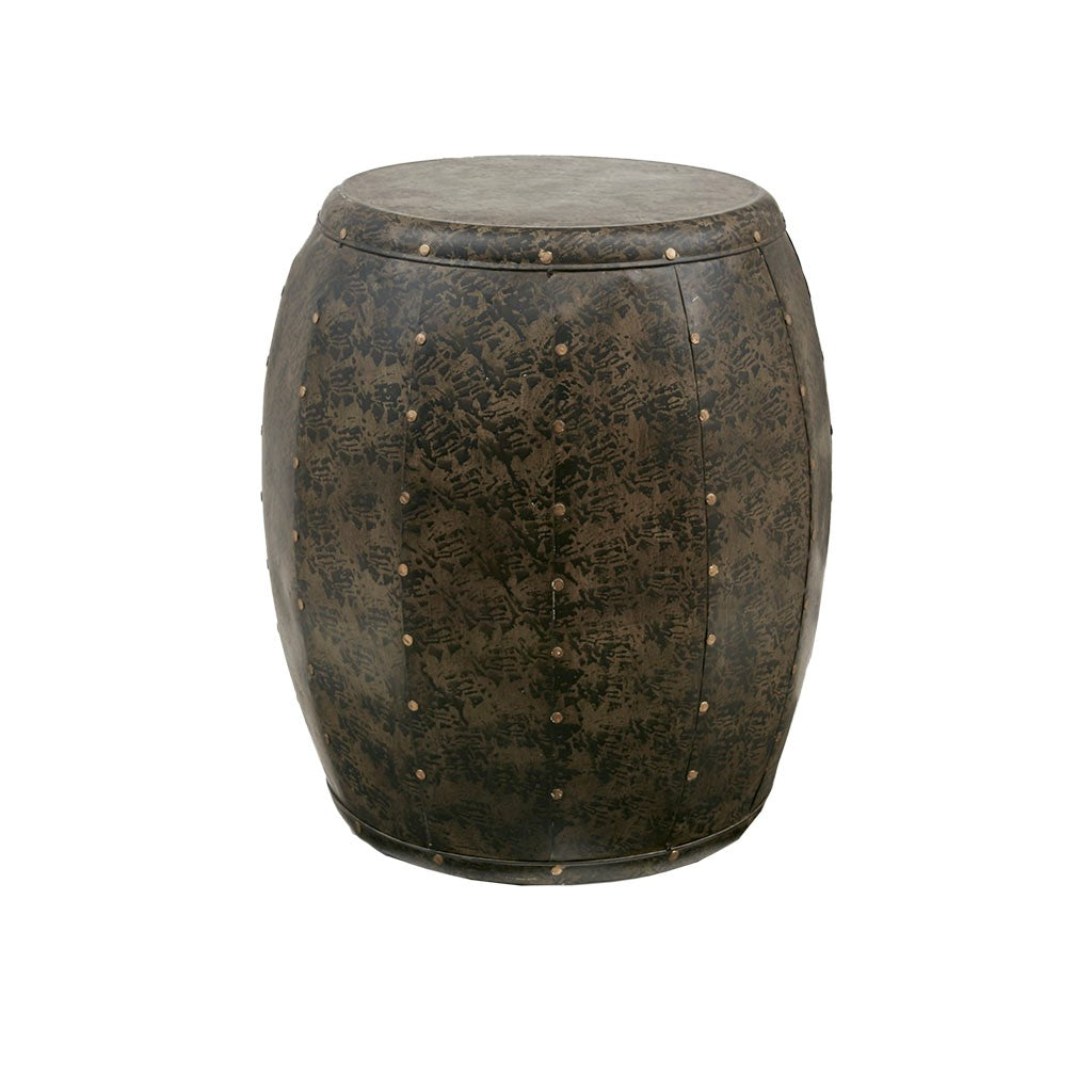 This antiqued bronze metal accent drum table offers the perfect touch to any rooms decor when used as additional seating as an accent, displayed in pairs as a cocktail table alternative or even used as a plant stand accessory. No Assembly required.