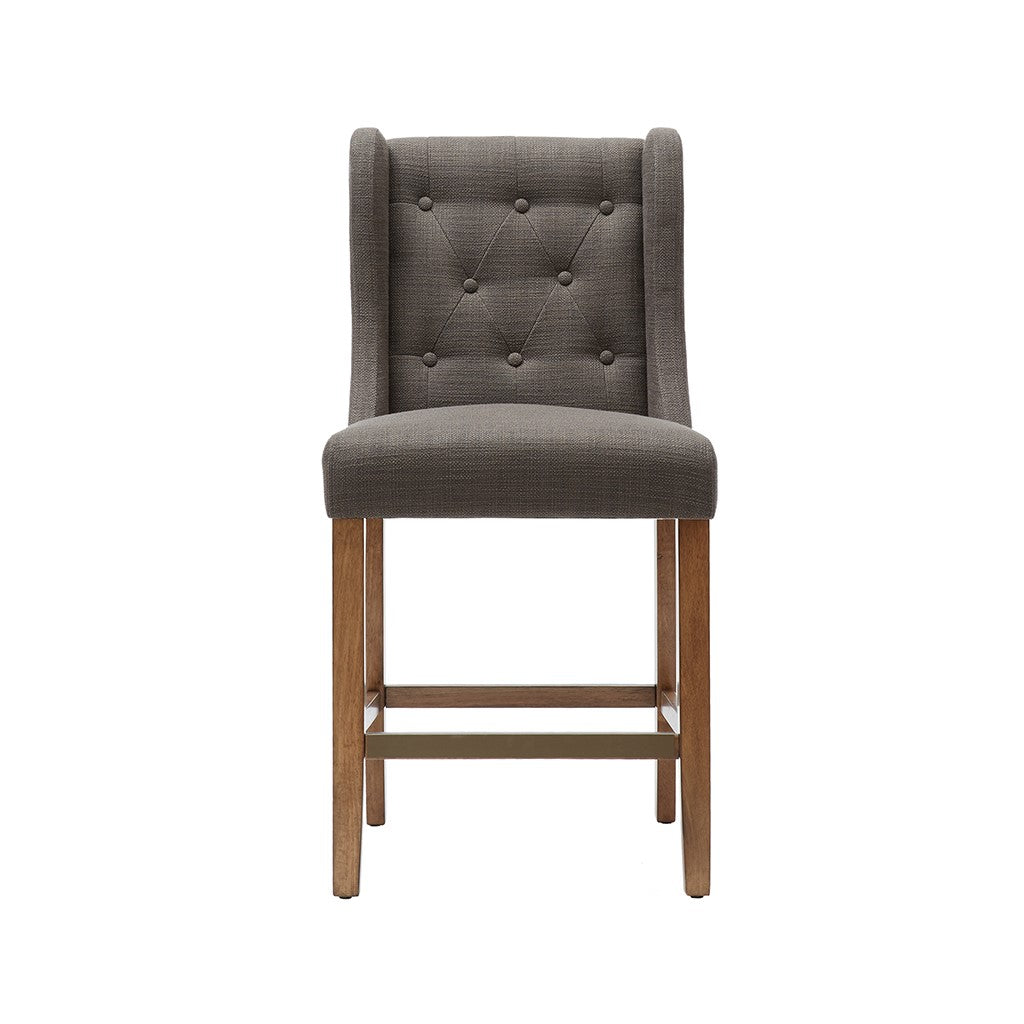 This beautiful button-tufted counter stool is upholstered in a beautiful woven fabric that coordinate perfectly with several different decor styles. Assembly required.