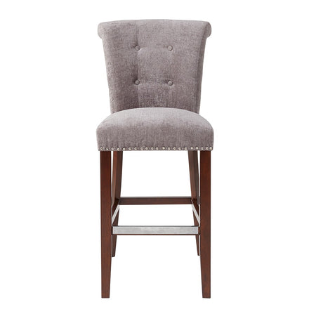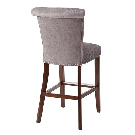 Elegant silver nail heads add an extra touch of dignified style to this roll back button tufted bar stool. Assembly required.