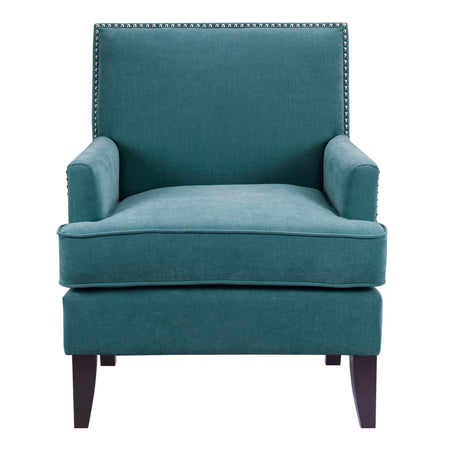 The Madison Park Colton Track Arm Club Chair brings a simple and sharp update to your home decor. This accent club chair features a sleek design with track arms and a nailhead trim along the back and sides, adding an elegant touch to the contemporary look. The exposed, solid wood legs provide a sophisticated complement to the upholstery to give this accent chair a stylish allure. A removable high density foam cushion completes the design and offers exceptional comfort to any room in your home. Leg assembly is required.