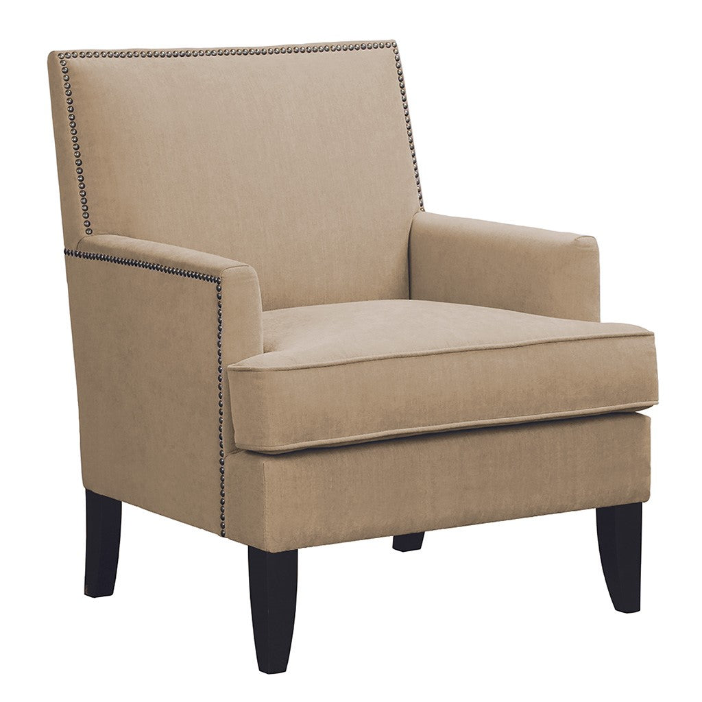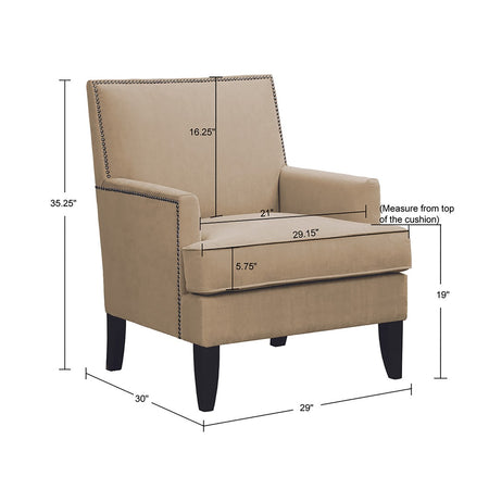 The Madison Park Colton Track Arm Club Chair brings a simple and sharp update to your home decor. This accent club chair features a sleek design with track arms and a nailhead trim along the back and sides, adding an elegant touch to the contemporary look. The exposed, solid wood legs provide a sophisticated complement to the upholstery to give this accent chair a stylish allure. A removable high density foam cushion completes the design and offers exceptional comfort to any room in your home. Leg assembly is required.