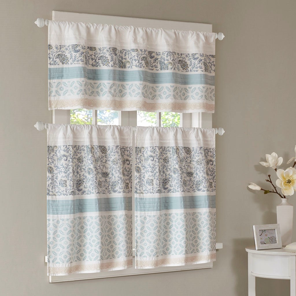 Dawn Printed and Pieced Rod Pocket Kitchen Tier Set - Blue - 30x36"
