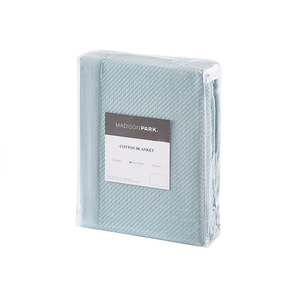 Wrap yourself up in the luxurious comfort of the Madison Park Egyptian Cotton Blanket. This ultra-soft Light Blue blanket in made from 100% certified Egyptian cotton that features reduced shrinkage, pilling, and snagging, for a durable and comfortable feel. The solid pattern of the blanket makes it easy to match with your existing casual decor. Machine washable this Egyptian cotton blanket is perfect for lying across your bed or sofa to keep warm and cozy all year round.
