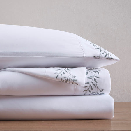 Embroidered Microfiber 4 PC Sheet Set - Green Vine Leaves - Queen Size