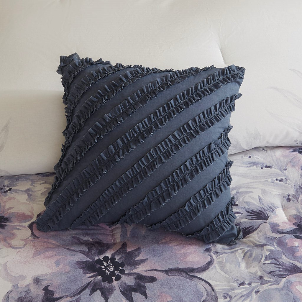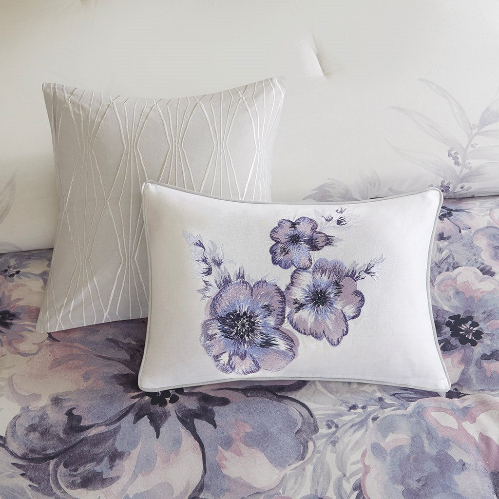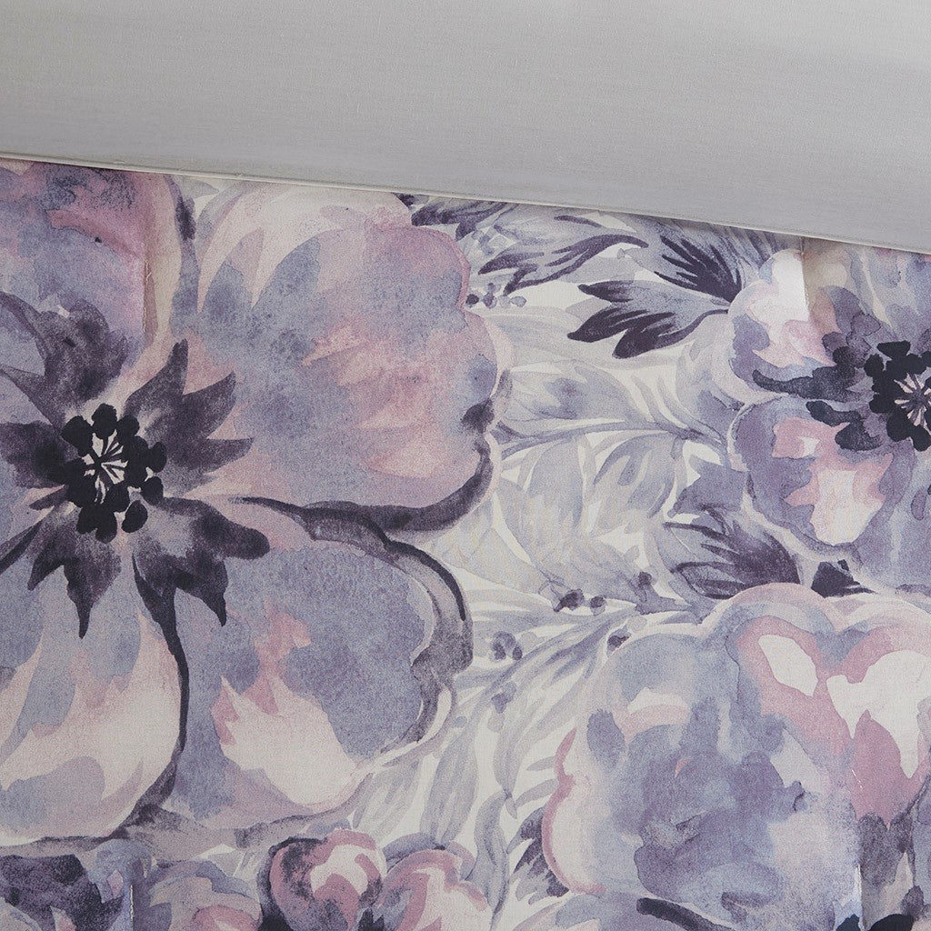 Madison Park's Enza 7 Piece Cotton Printed Comforter Set introduces a beautiful splash of color to your bedroom. A floral watercolor print is gorgeously displayed on the 100% cotton percale comforter and shams, for a stunning casual allure. The solid reverse and bed skirt complement the top of the bed to create a chic coordinated look. Three decorative pillows with embroidered details and fabric manipulation add a charming accent to complete the bedding set. Sure to brighten up your bedroom, this bedding set is also OEKO-TEX certified, meaning it does not contain any harmful substances or chemicals to ensure quality comfort and wellness.