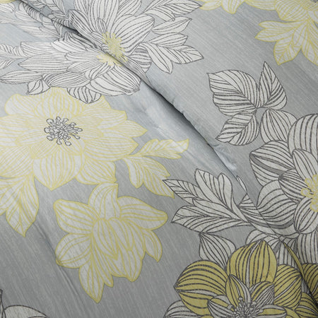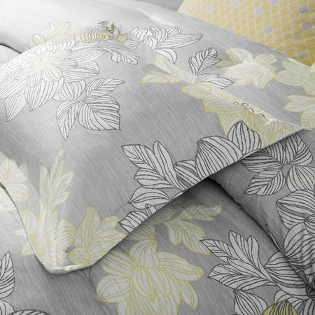 - Large scale printed floral design on one side for asymmetrical look on comforter set and printed cotton sheet set