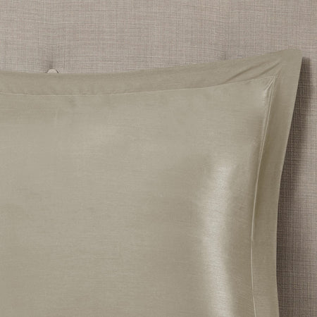 Euro Shams: 100% polyester polyoni faux silk face, 100% polyester microfiber reverse