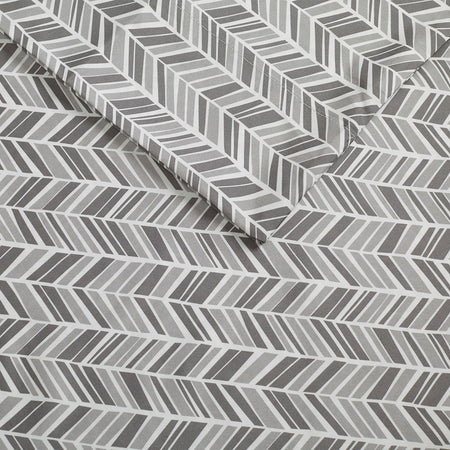 Chevron Printed Microfiber Sheet Set - Grey - Full Size