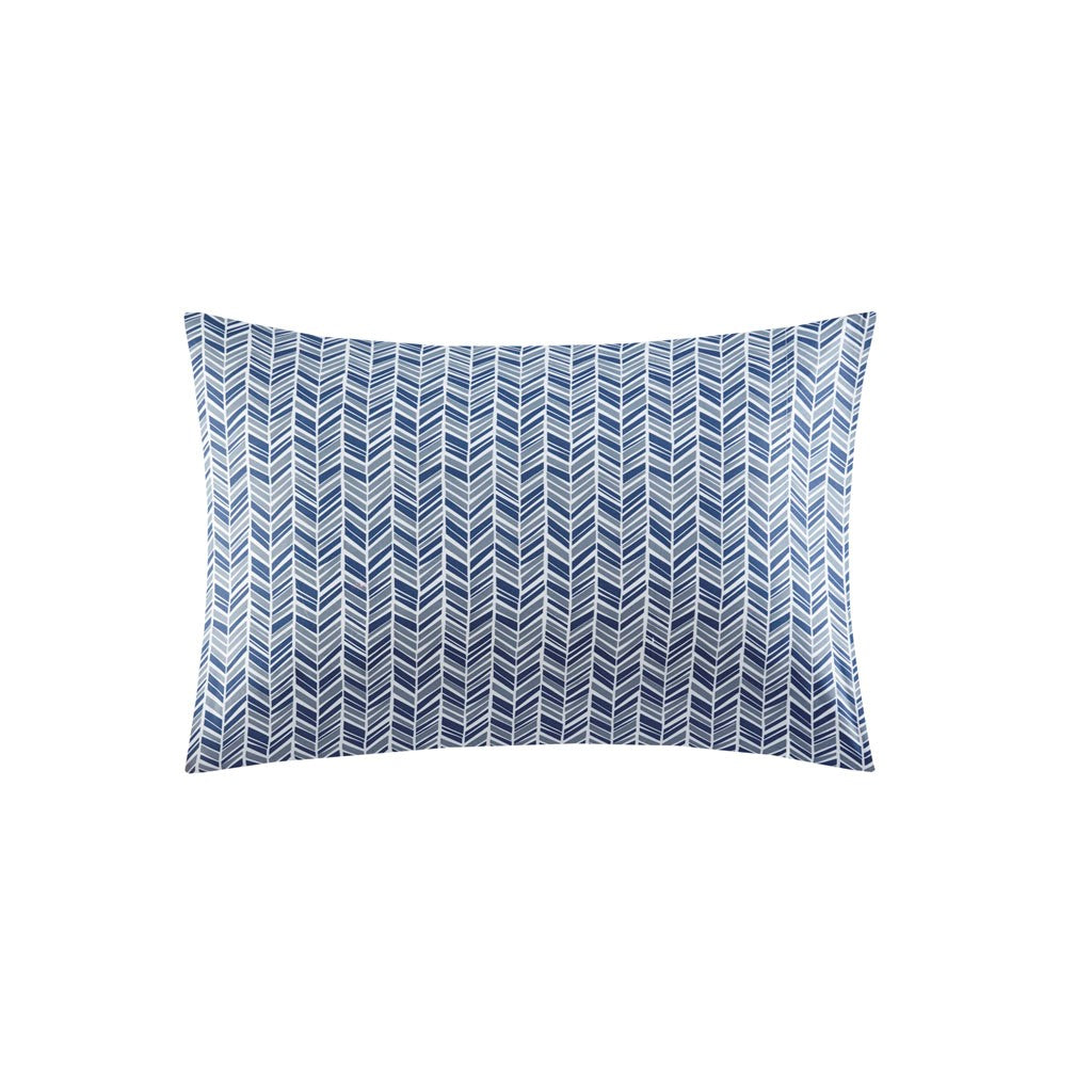 Chevron Printed Microfiber Sheet Set - Navy - Full Size