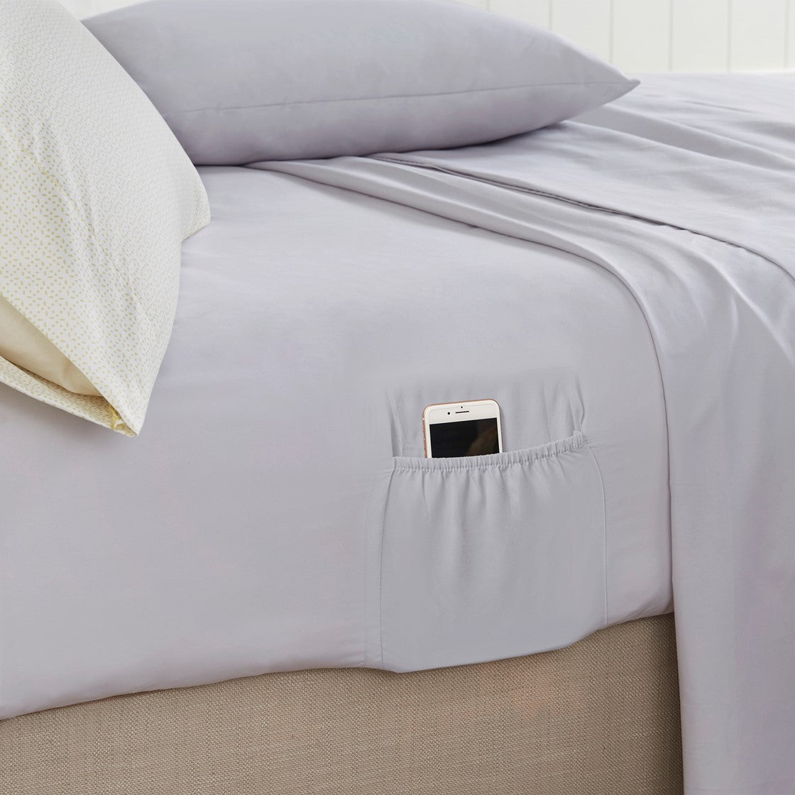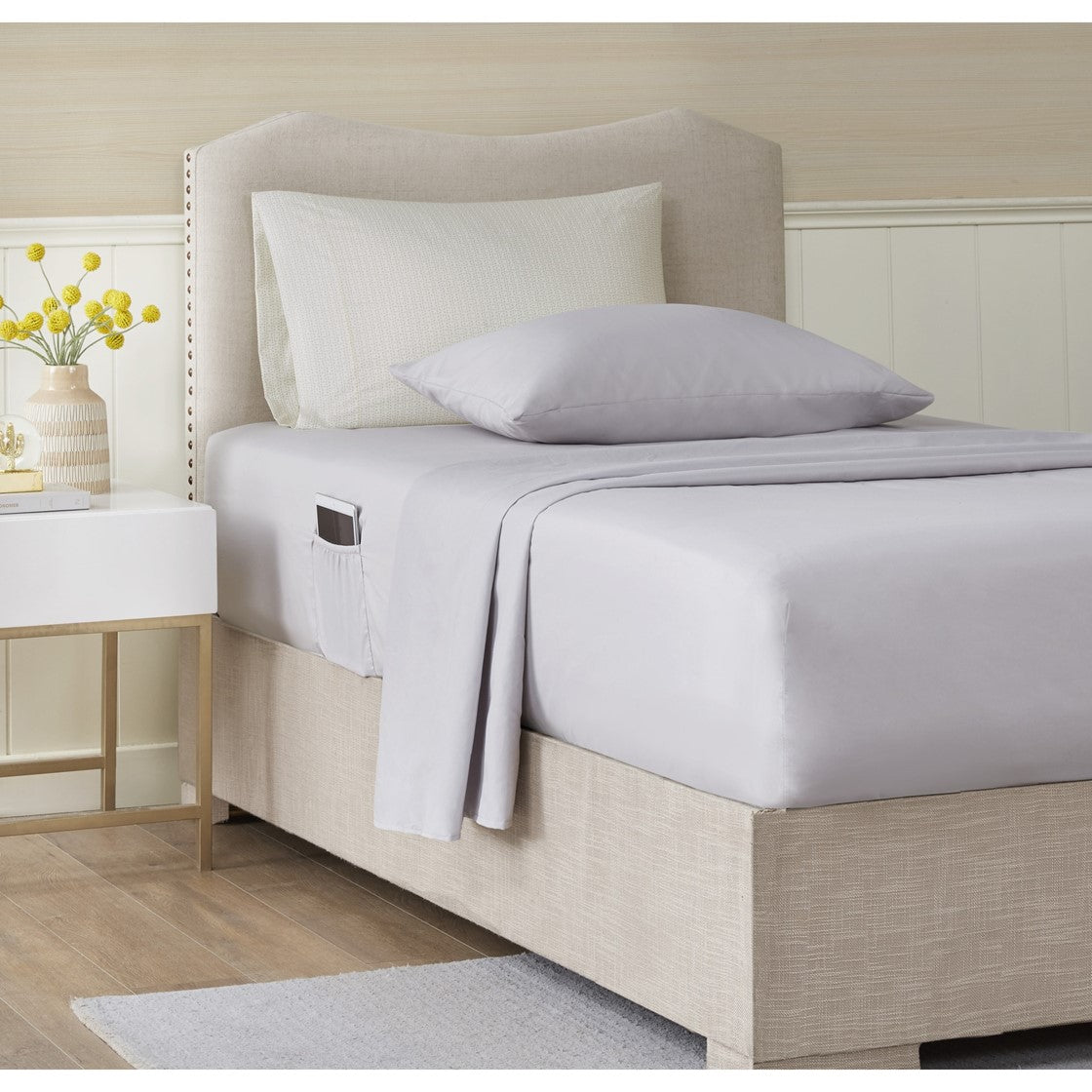 - Fitted sheet comes with two convenient side pockets on each length side for extra bedside storage that's perfect for your small electronic devices