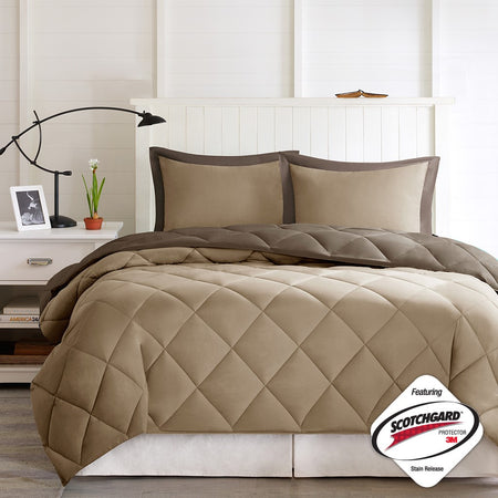 Larkspur 3M Scotchgard Diamond Quilting Reversible Down Alternative Comforter Set - Brown / Sand - Full Size / Queen Size
