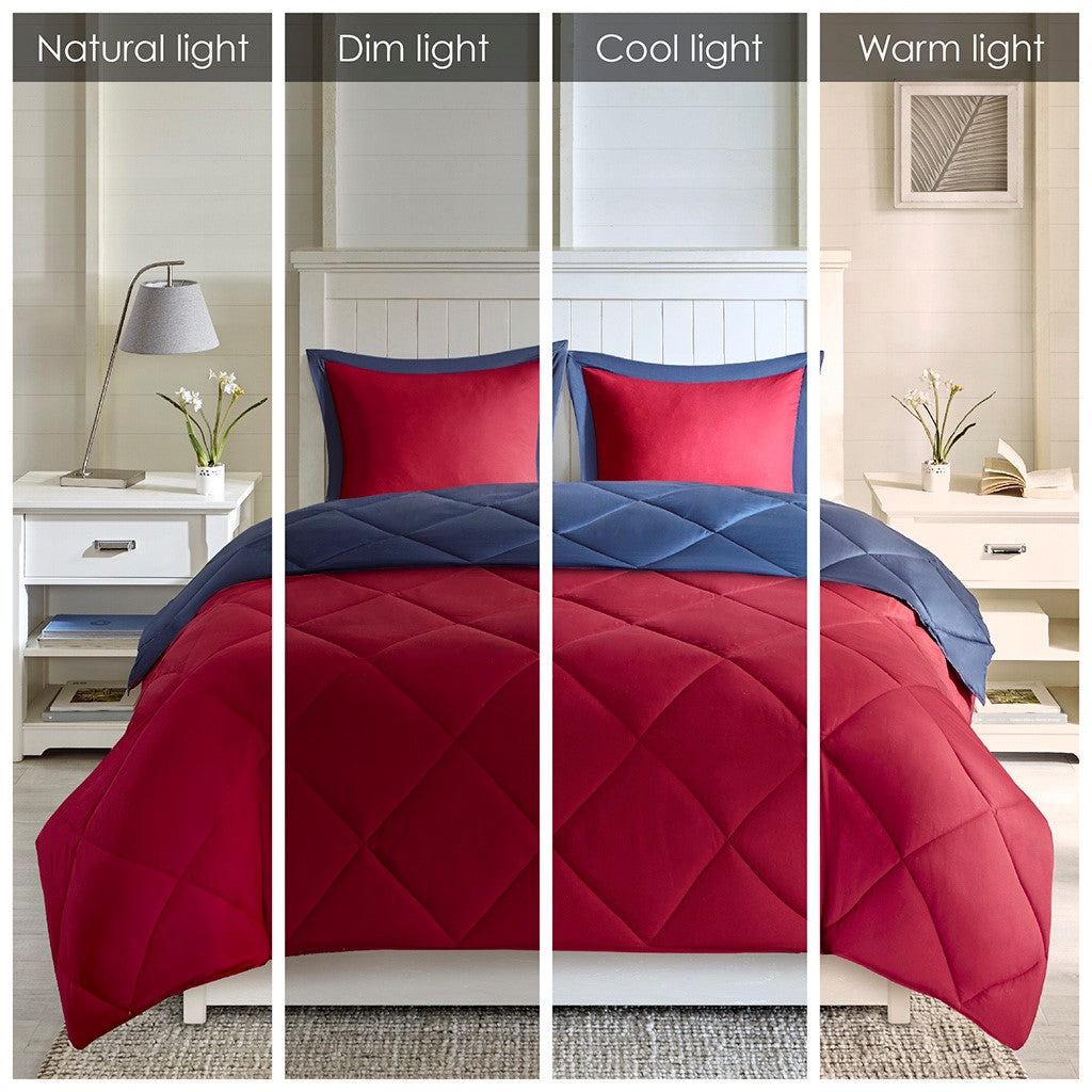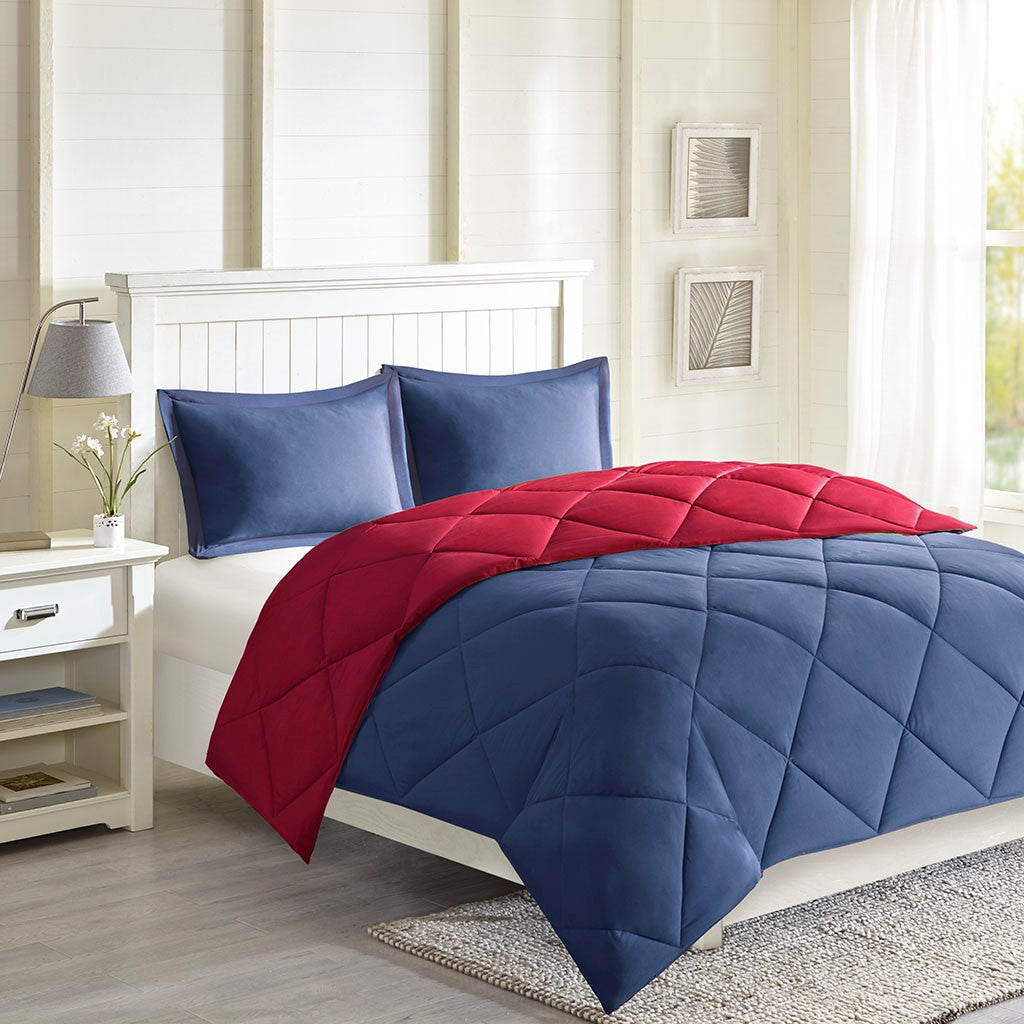 Larkspur 3M Scotchgard Diamond Quilting Reversible Down Alternative Comforter Set - Red / Navy - Full Size / Queen Size
